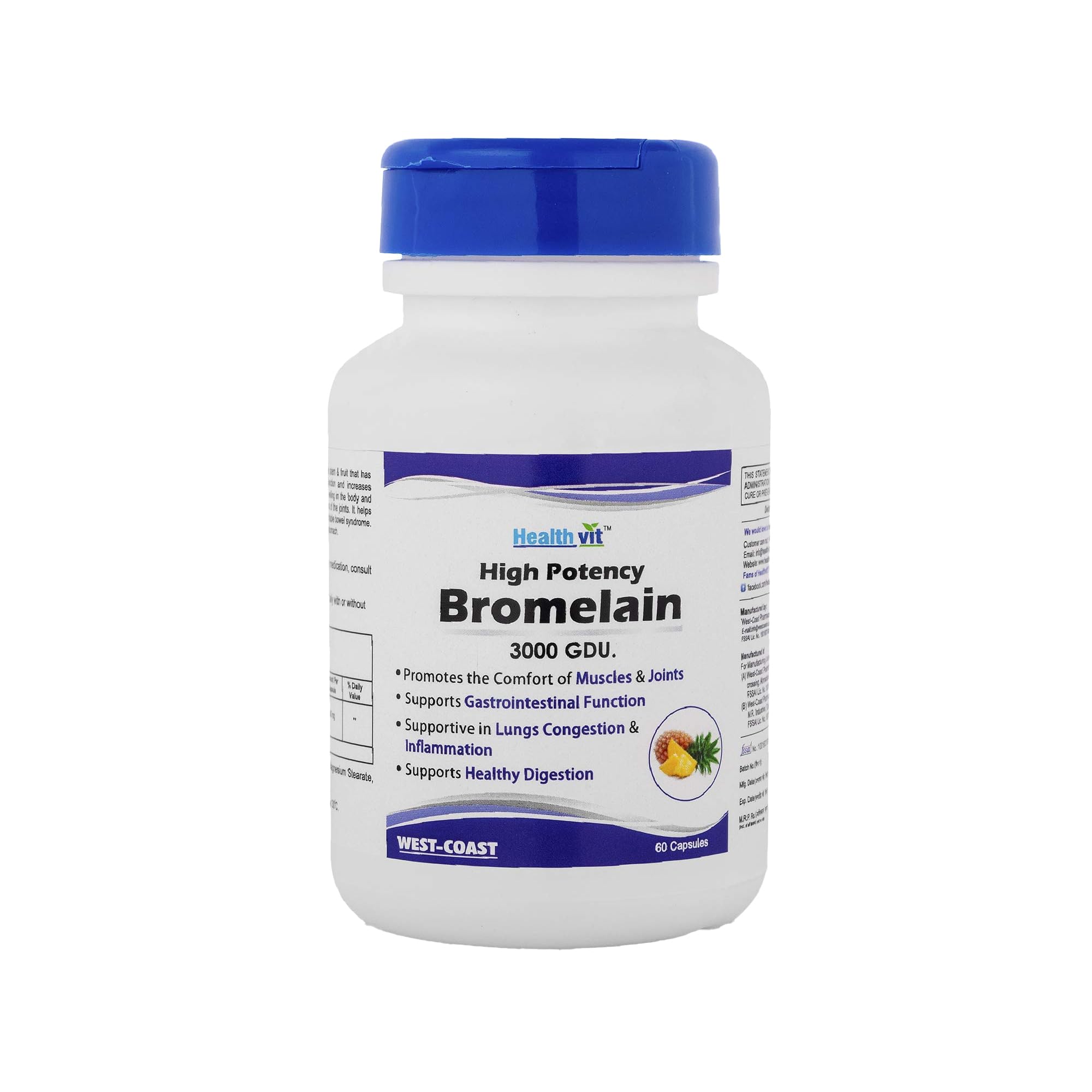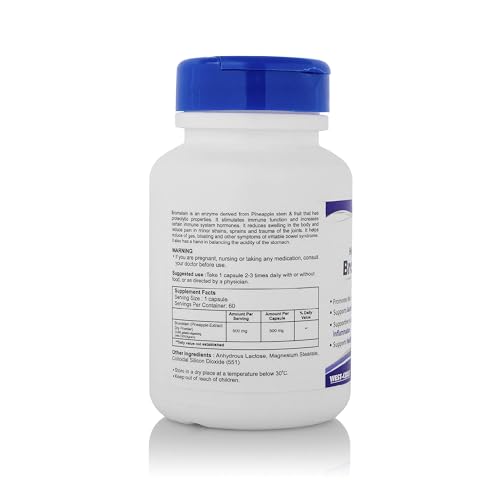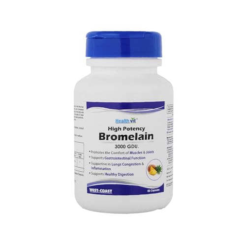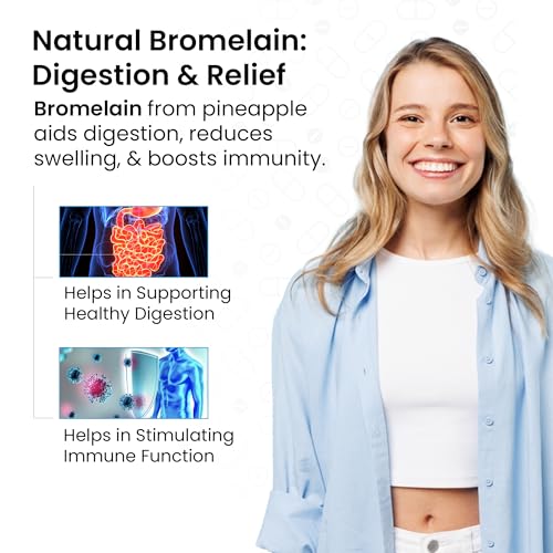 Bromelain is an enzyme which has proteolytic (protein-digesting) properties. It stimulates immune function and increases certain immune system hormones. It reduces swelling in the body and reduces pain in minor stain sprains and trauma of the joints. It helps reduces of gas bloating and other symptoms of irritable bowel syndrome. It also has a hand in balancing the acidity of the stomach. Amount per serving - 500 mg amount per capsules 500 mg. Multiple health benefits - our non-synthetic bromelain offers several health benefits such as promoting joint comfort cardiovascular health and healthy digestion and being made from natural pineapple. Exceptional value and long-lasting dosage - this non-gmo and powerful bromelain supplement is infused with a dosage of 500 mg and contains 3000 gdu per gram.