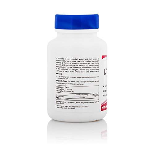 Benefits of healthvit l-threonine 500mg. 60 capsules good nutritional balance of feeds. L-threonine is an essential amino acid.