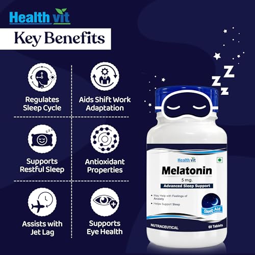 Healthvit Melatonin 5mg | Helps You Fall Asleep Faster, Stay Asleep Longer, Easy to Take, Faster Absorption - 60 Tablets
