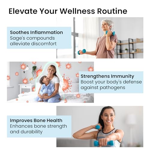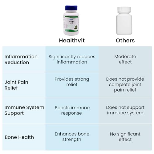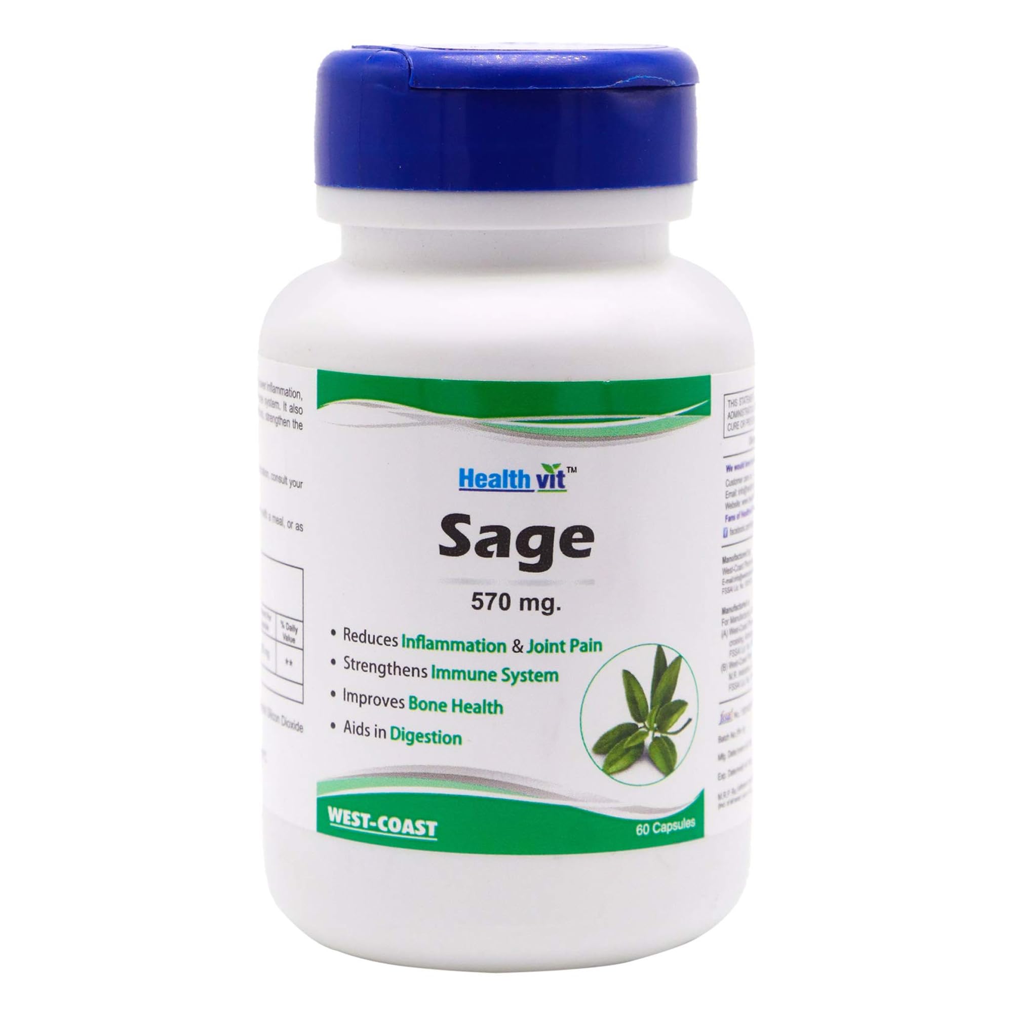 Healthvit sage 570 mg 60 capsules. Sage has the ability to improve brain function lower inflammation prevent chronic diseases and boost the immune system. It also helps regulate digestion alleviate skin conditions and strengthen the bones. 1. Reduces inflammation and joint pain. 2. Strengthens immune system. 3. Improves bone health. 4. Aids in digestion. Ingredients: organic sage (salvia officinalis) (leaf) 570 mg. Suggested use: take 2 capsules twice a day with a meal or as directed by healthcare practitioner.