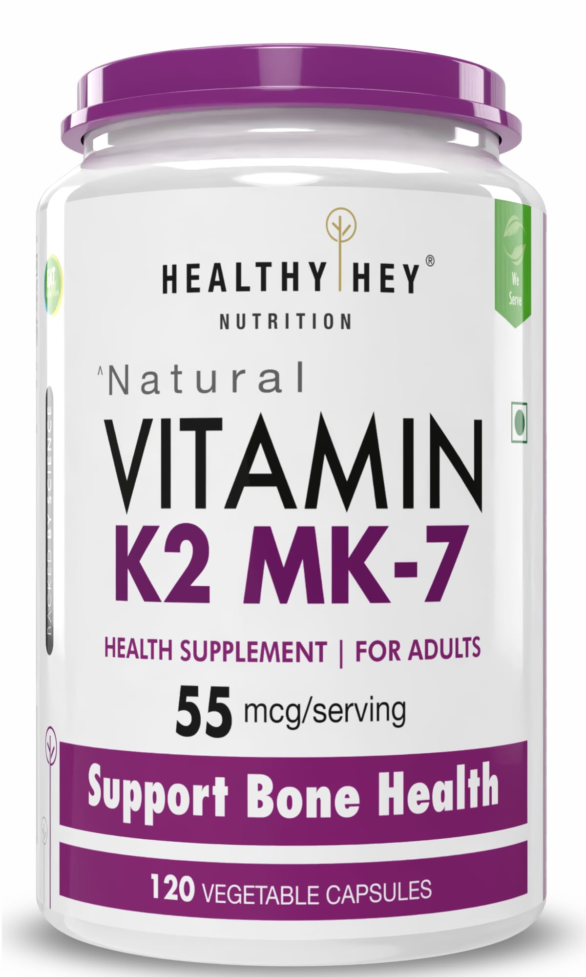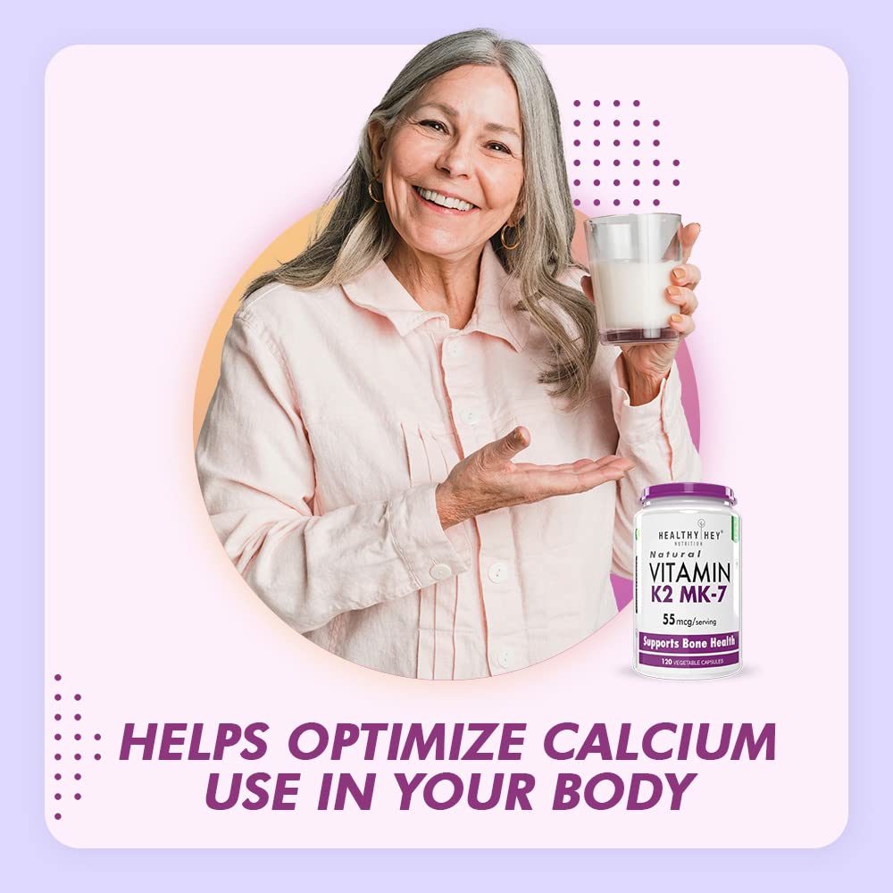 Healthier Bones: Vitamin K2 helps your body transport calcium more effectively. HealthyHey 55 mcg of Vitamin K2 MK7 capsules maintain calcium density in bones and keep bones strong and healthy.