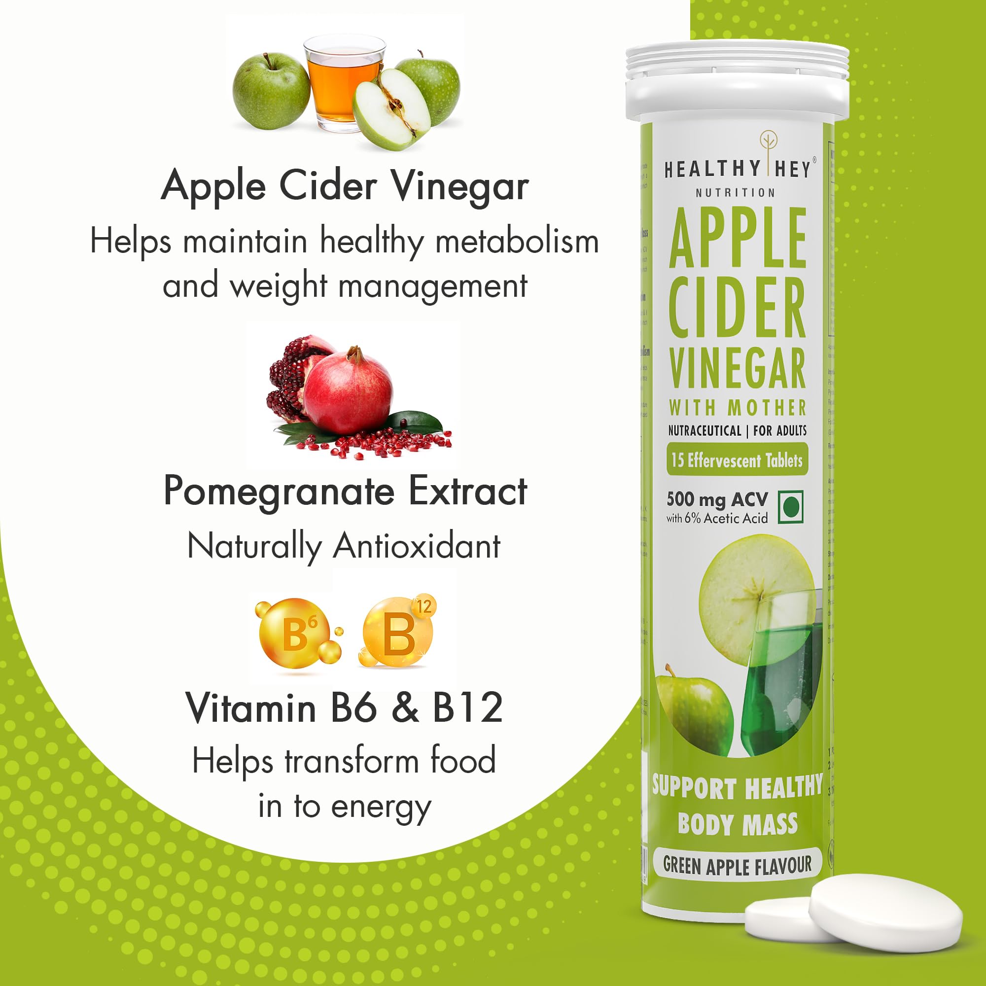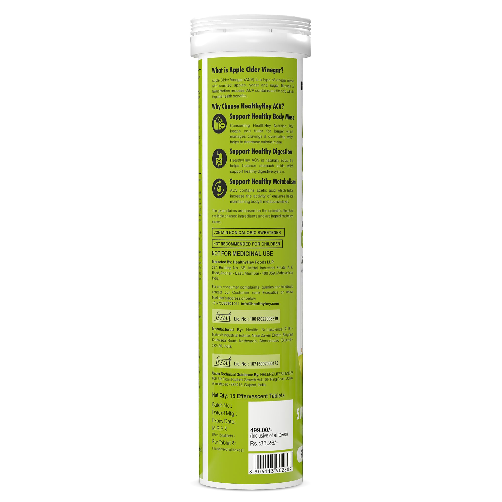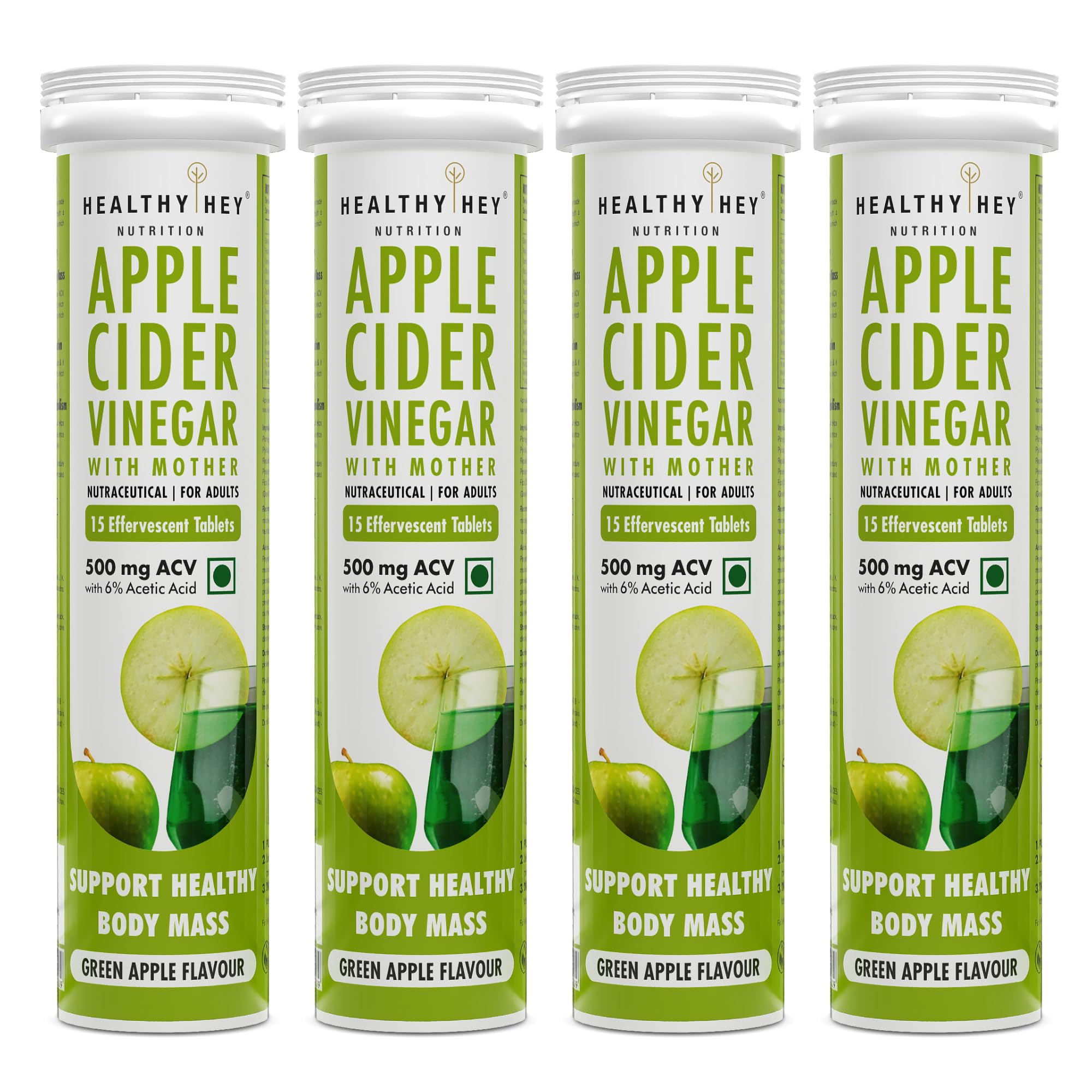 HealthyHey Nutrition Apple Cider Vinegar with Mother Effervescent Tablets - 500mg - Pack of 4-60 servings