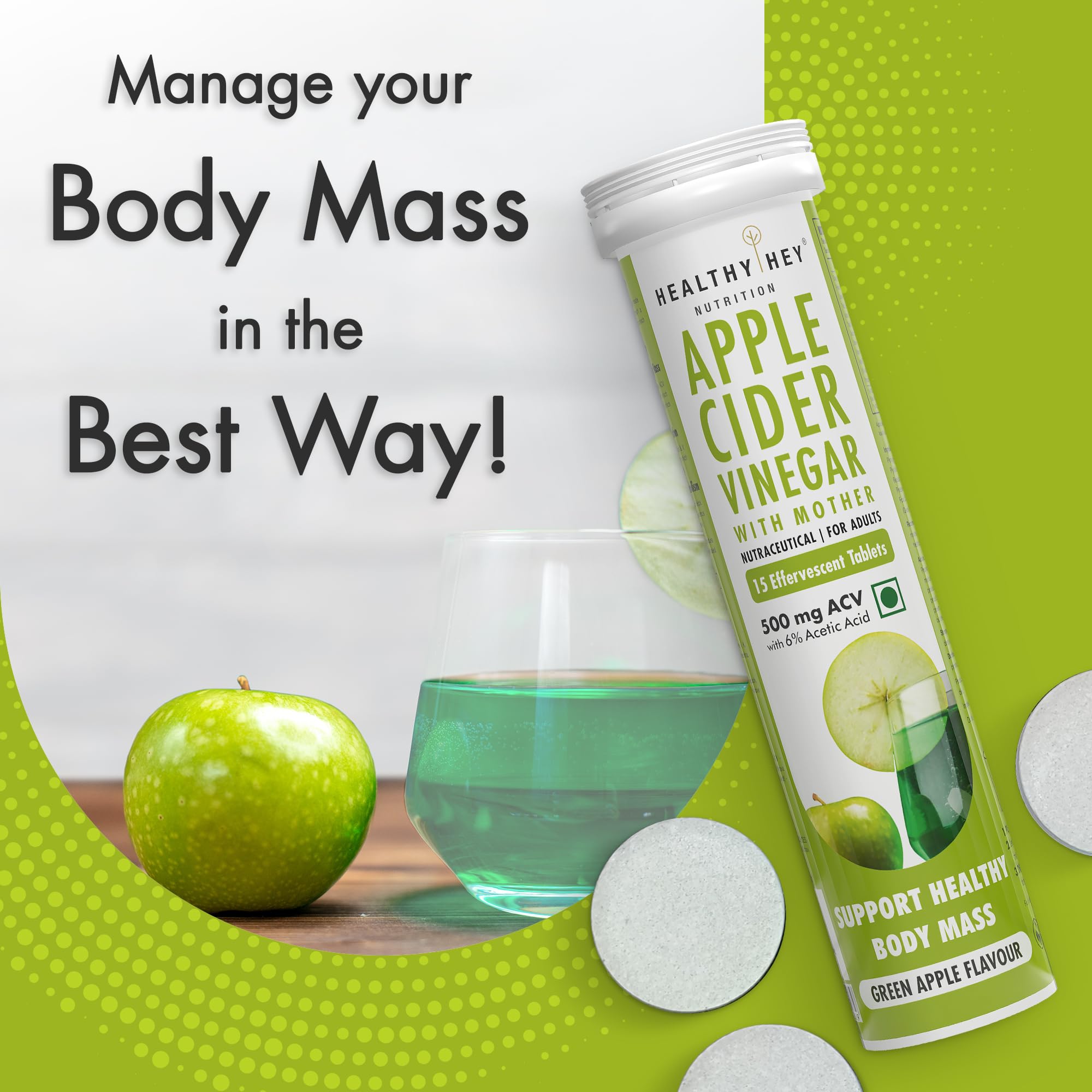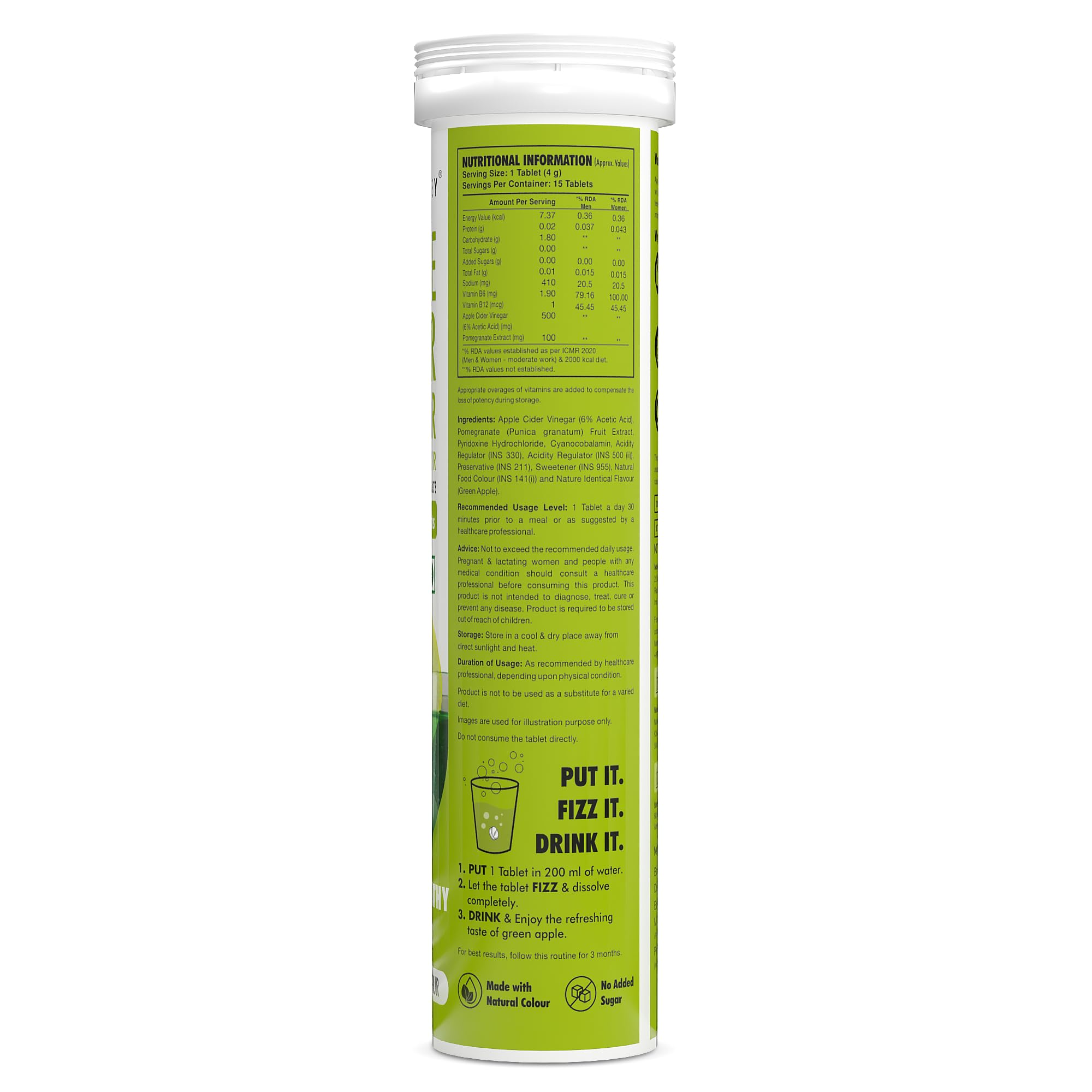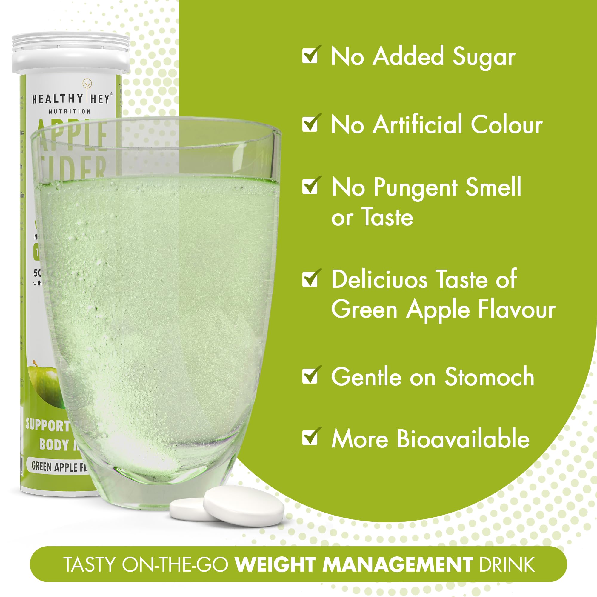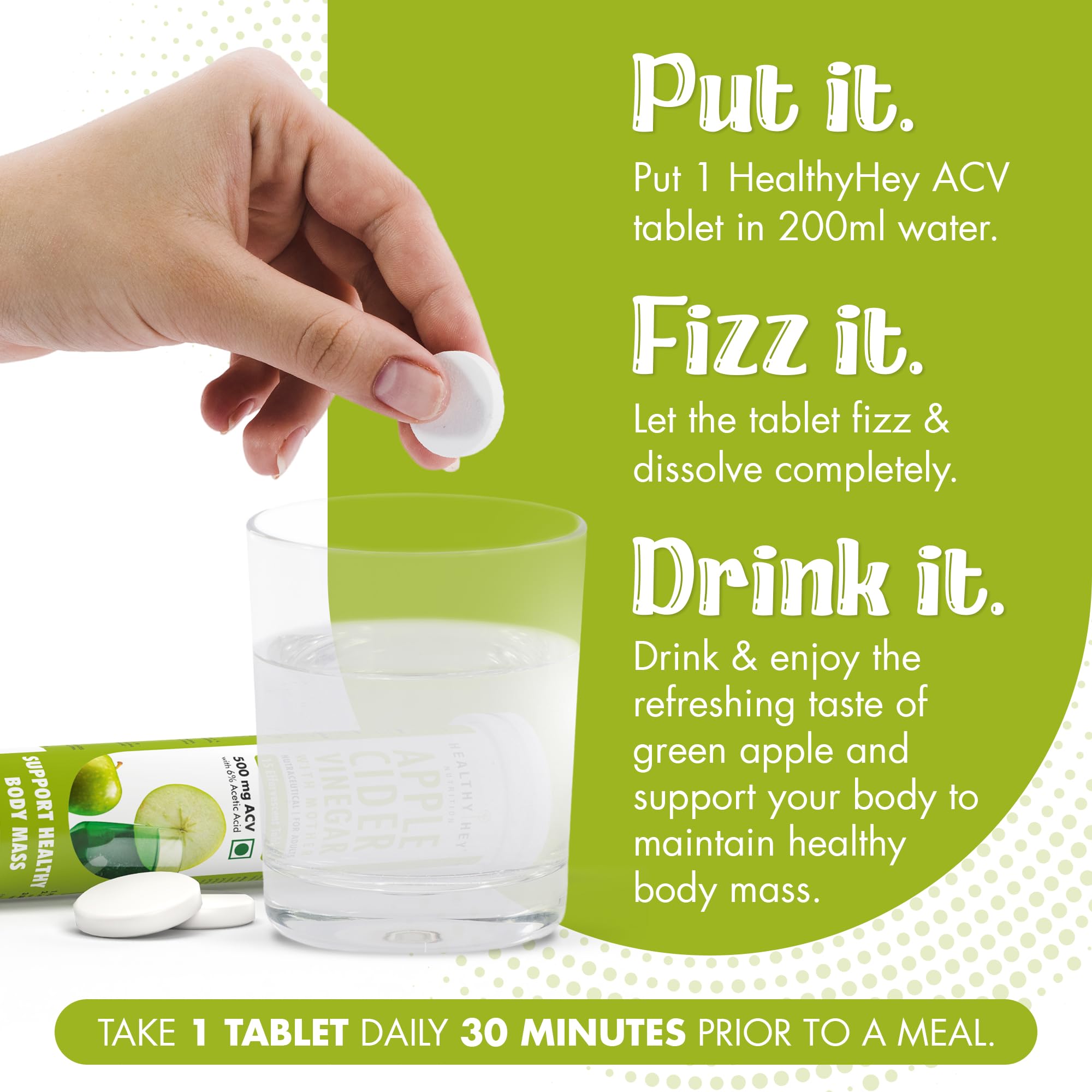 HealthyHey Nutrition Apple Cider Vinegar with Mother Effervescent Tablets - 500mg - Pack of 4-60 servings