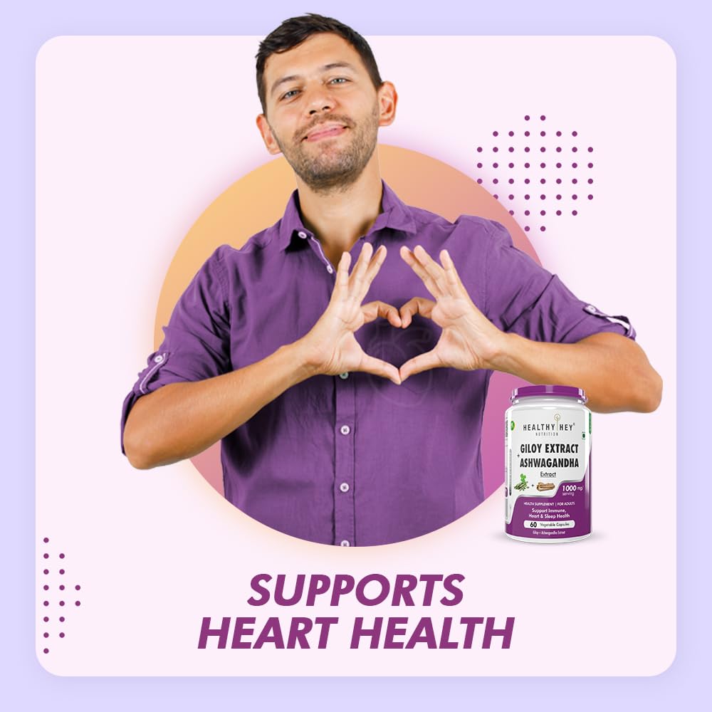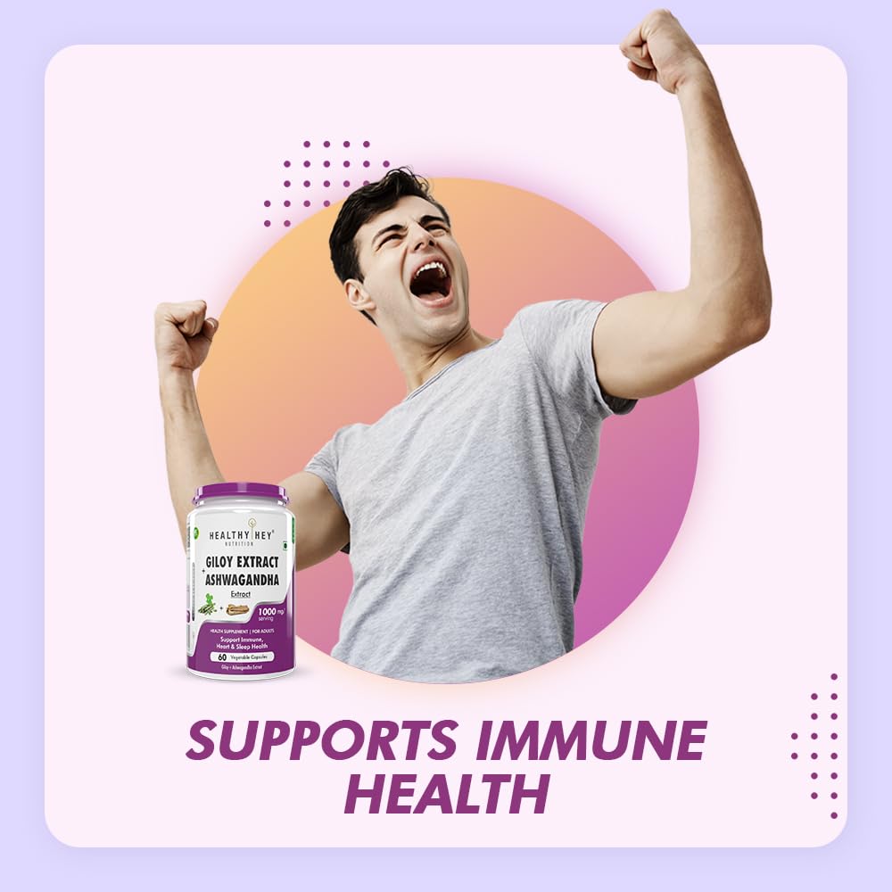 Healthyhey Nutrition Giloy Extract plus Ashwagandha Extract - Support Immunity-60 veg. capsules