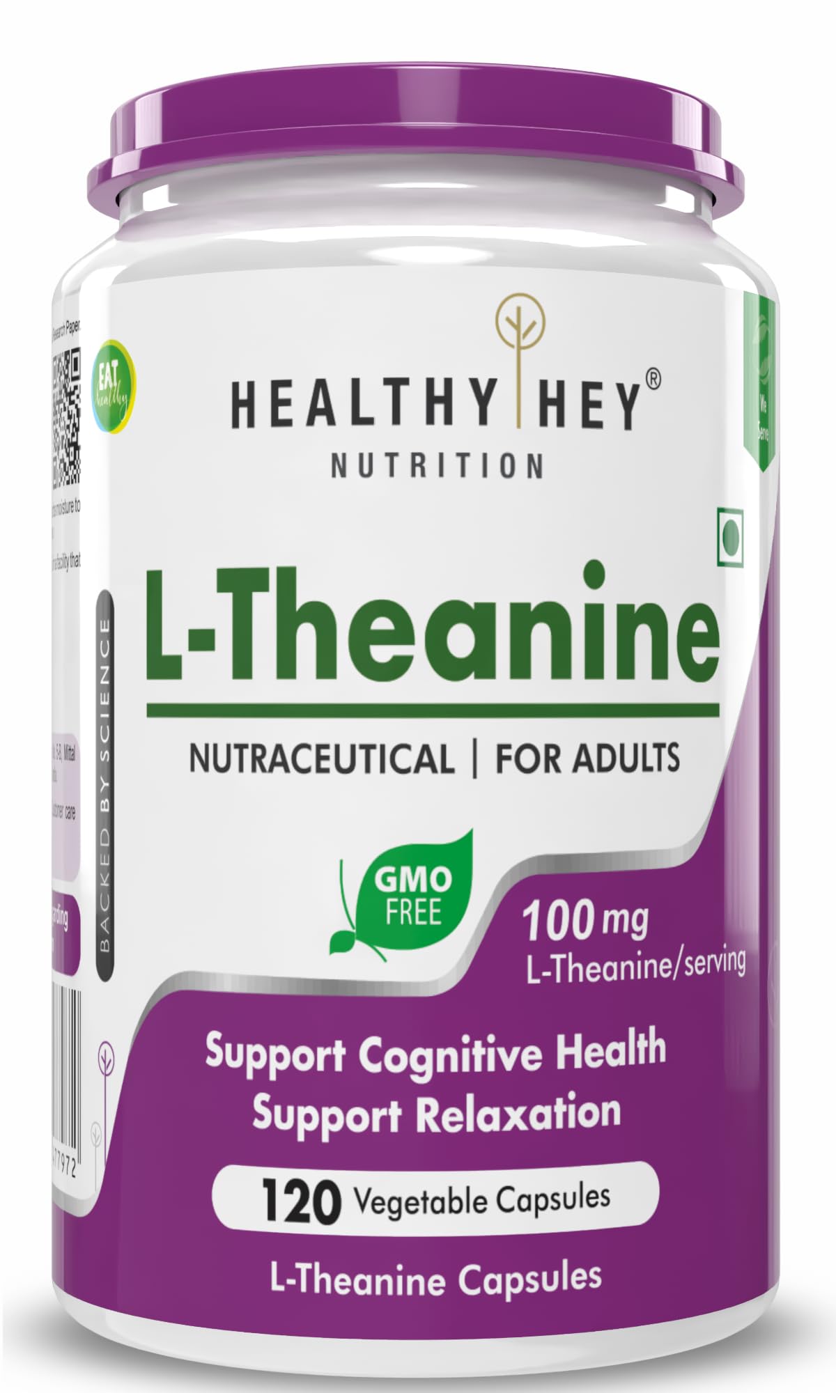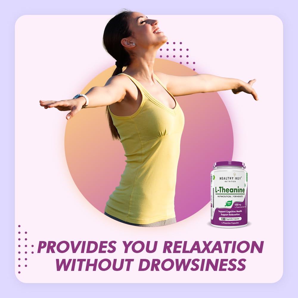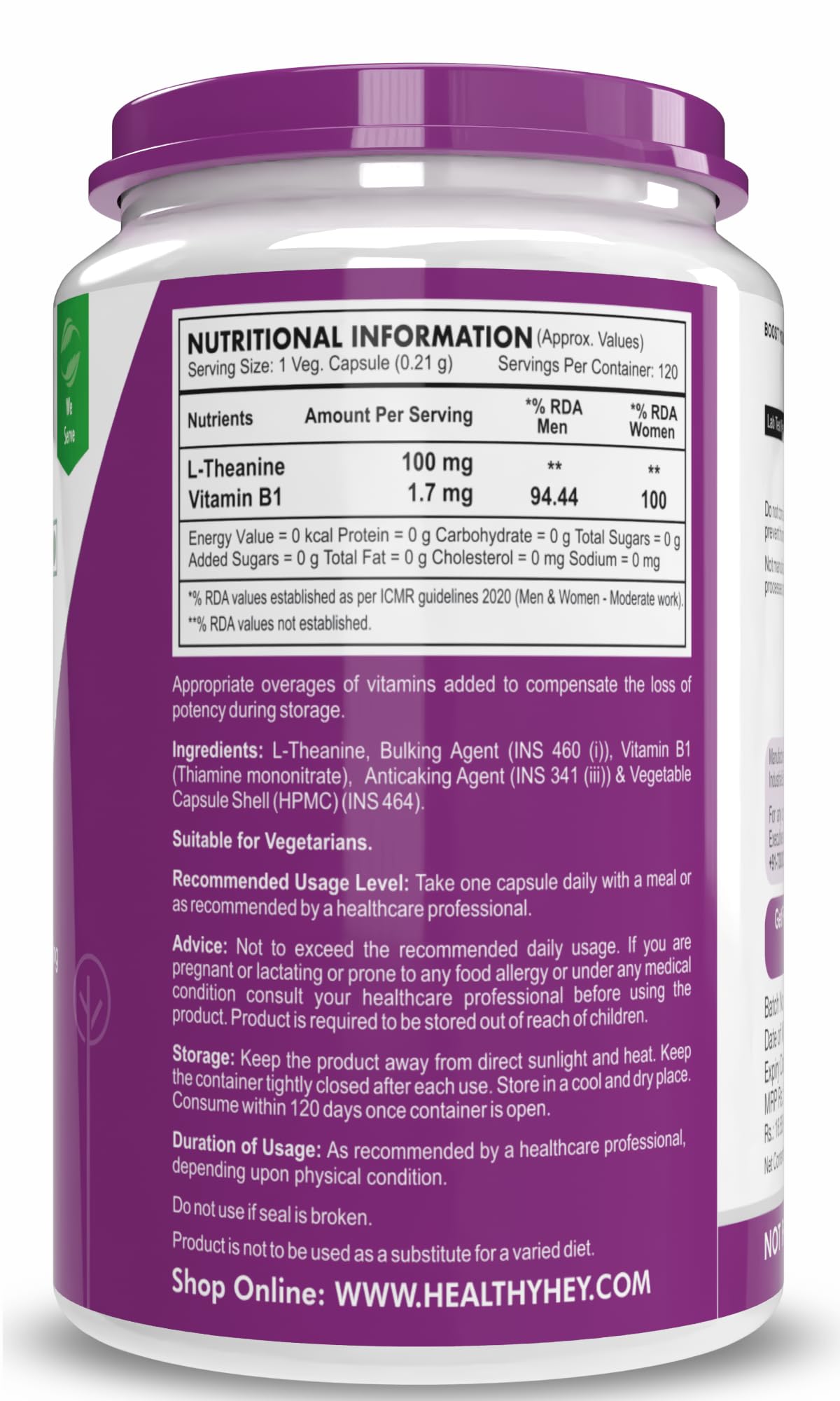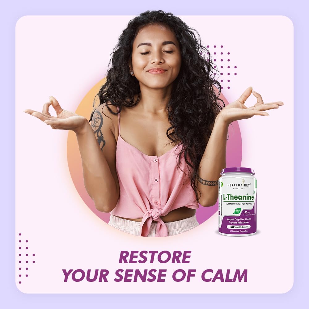 HealthyHey Nutrition L-Theanine -Support Relaxation -Pack of 120 Vegetarian Capsules