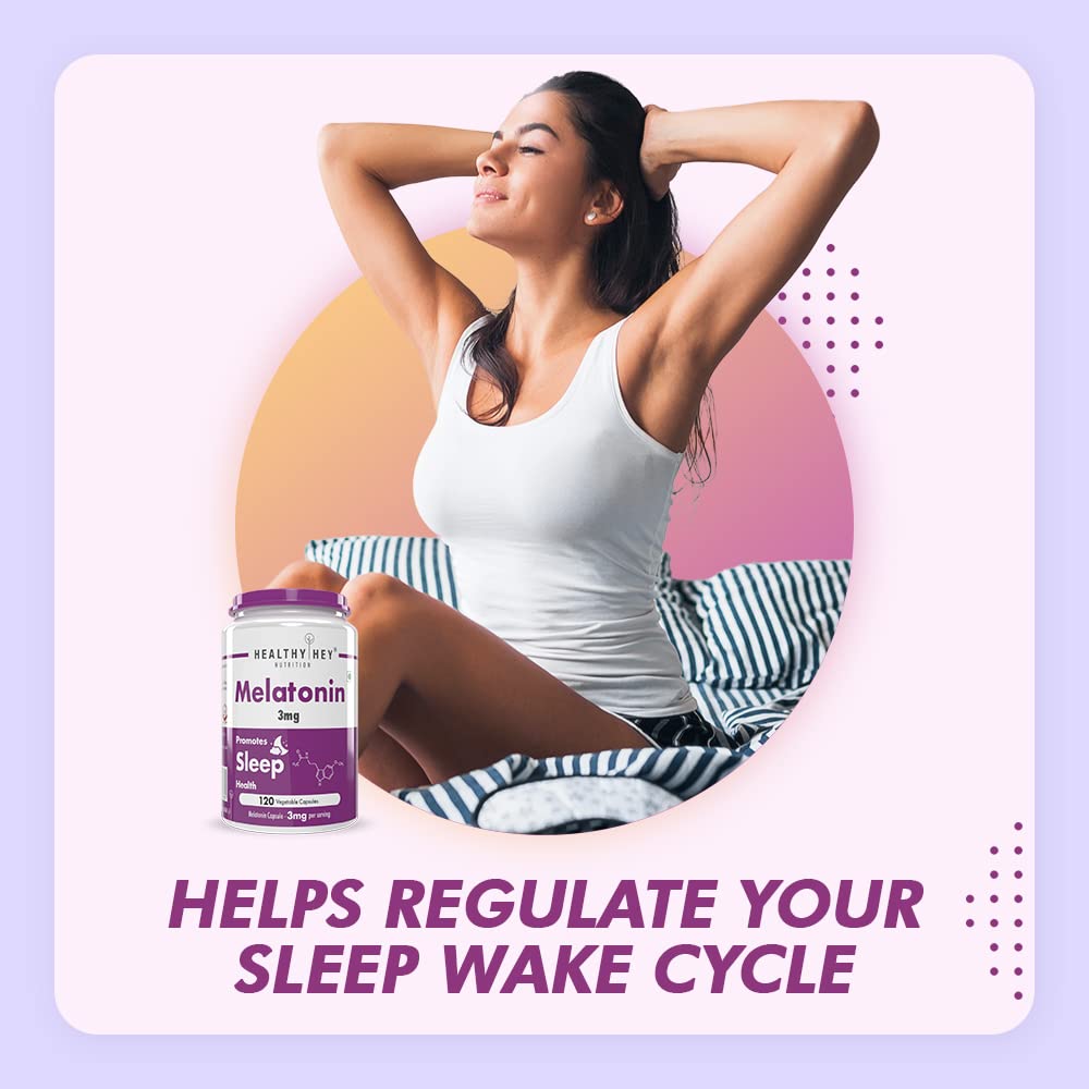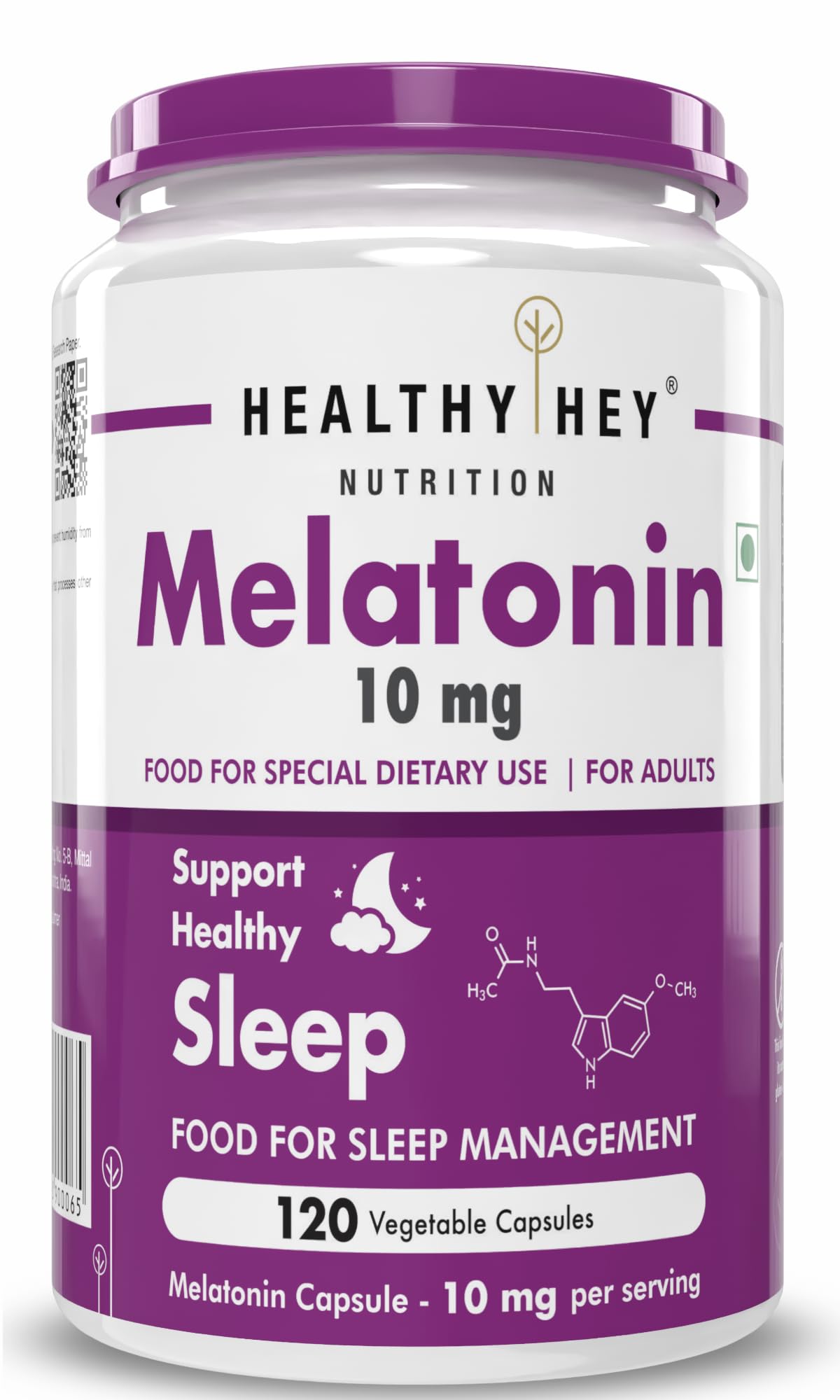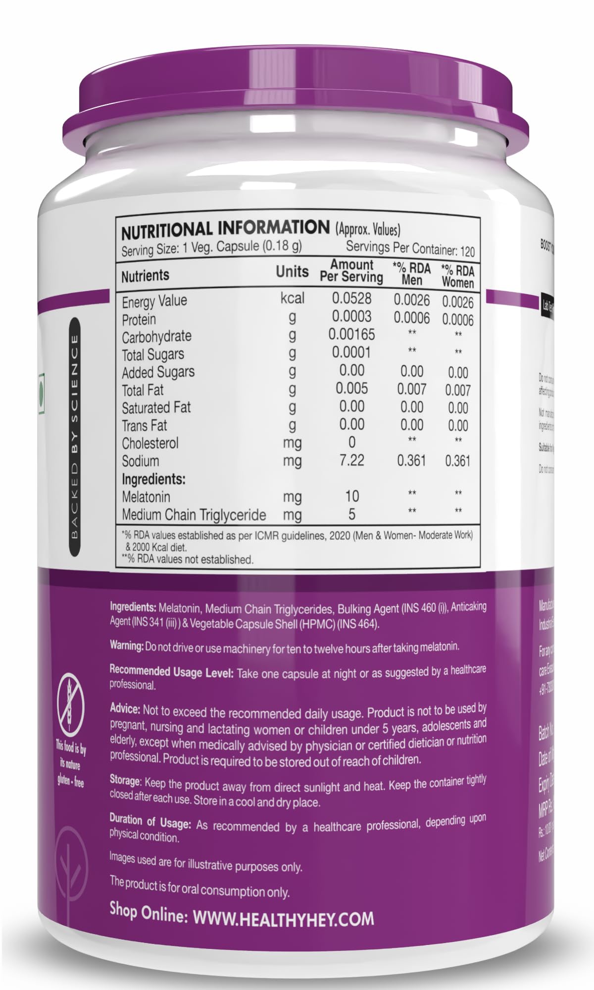 HealthyHey Nutrition Melatonin 10mg Pack of 120 vegetable capsules - Promotes Sleep and Relaxation (10mg)