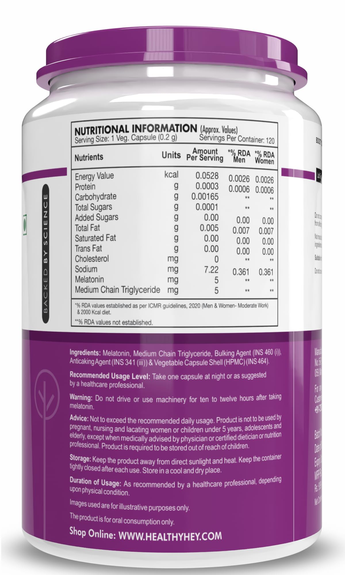 HealthyHey Nutrition Melatonin 120 vegetable capsules 5mg - Promotes Sleep and Relaxation