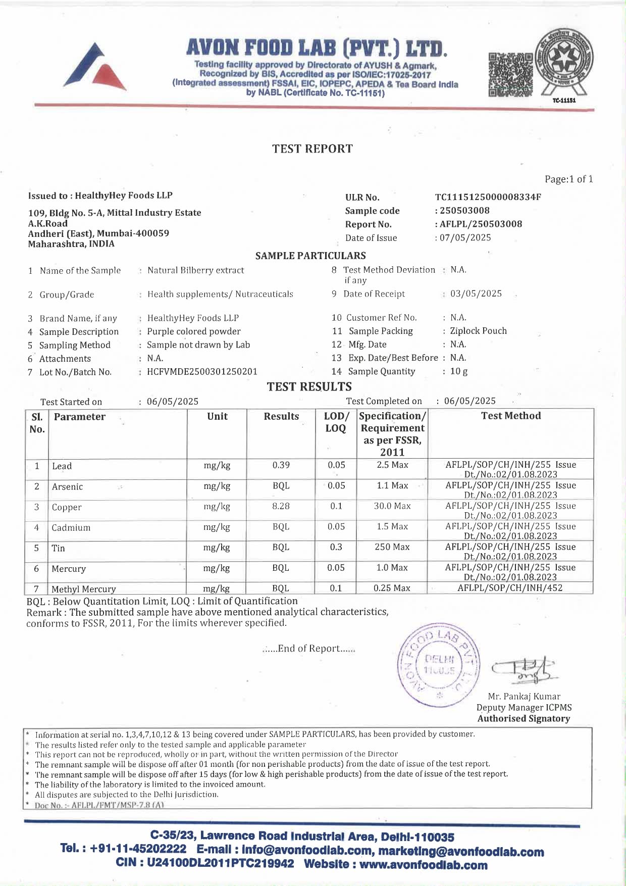 HealthyHey Nutrition Natural Bilberry Extract 60 vegetable capsules