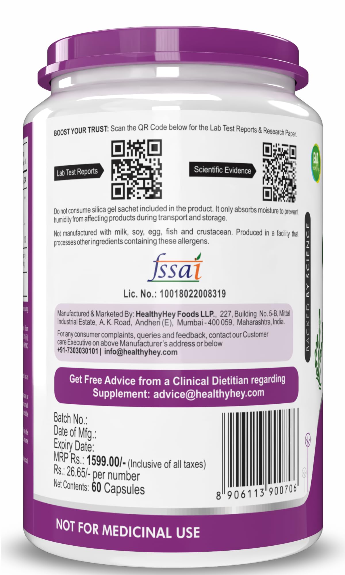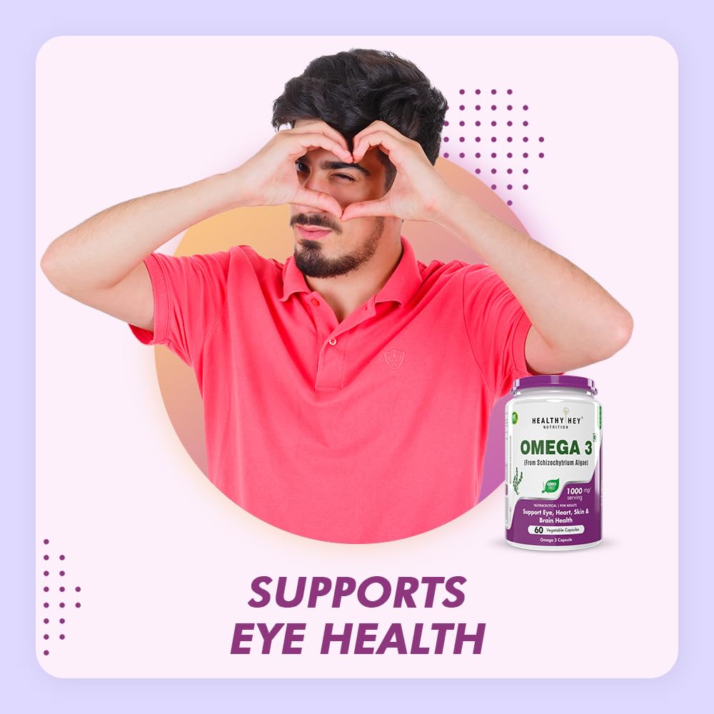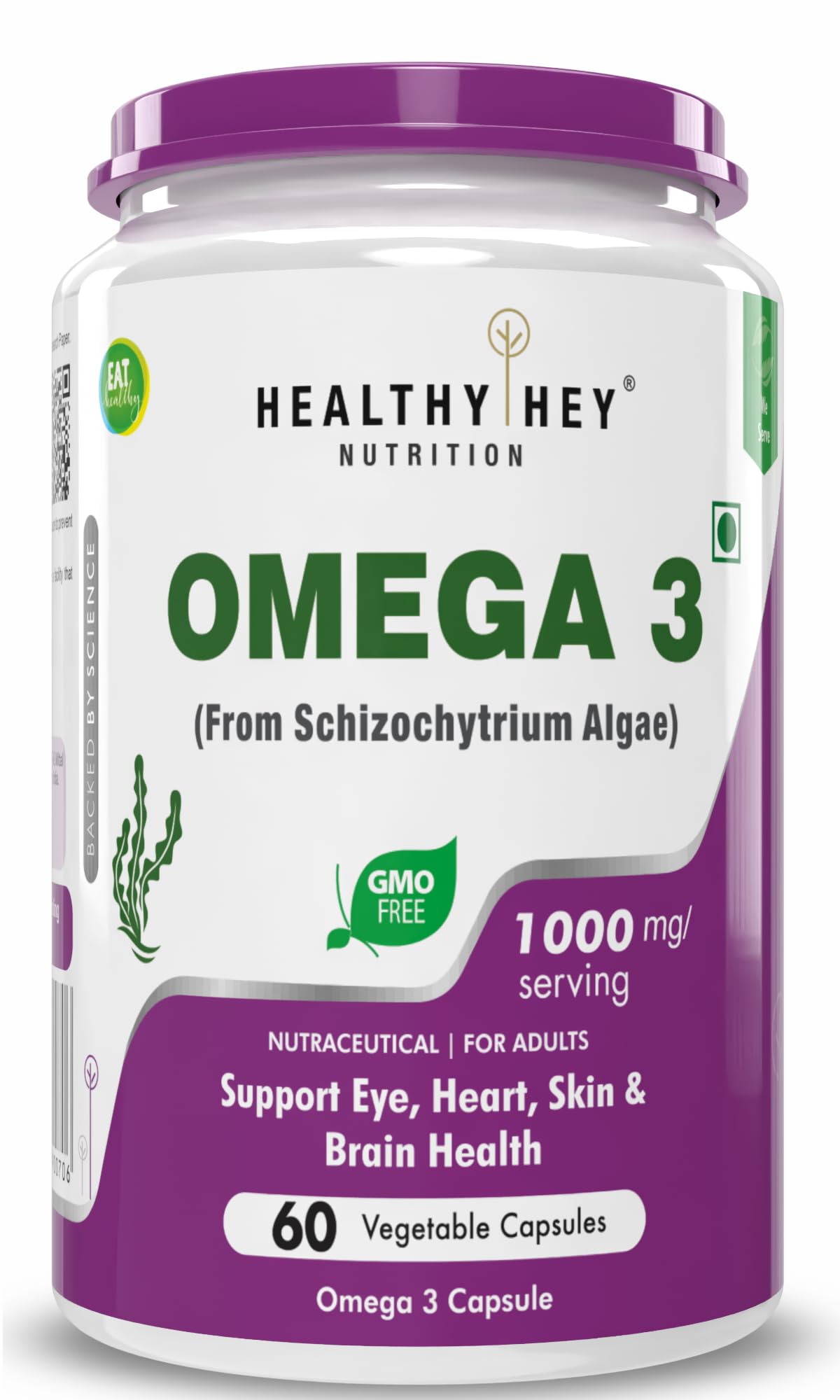 HealthyHey Nutrition Natural Omega 3 - Support Heart Brain & Joint - Sourced from Algae - Fish Oil-free - 60 Veg Capsules