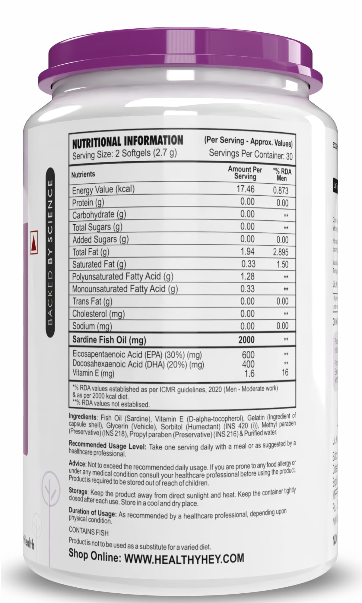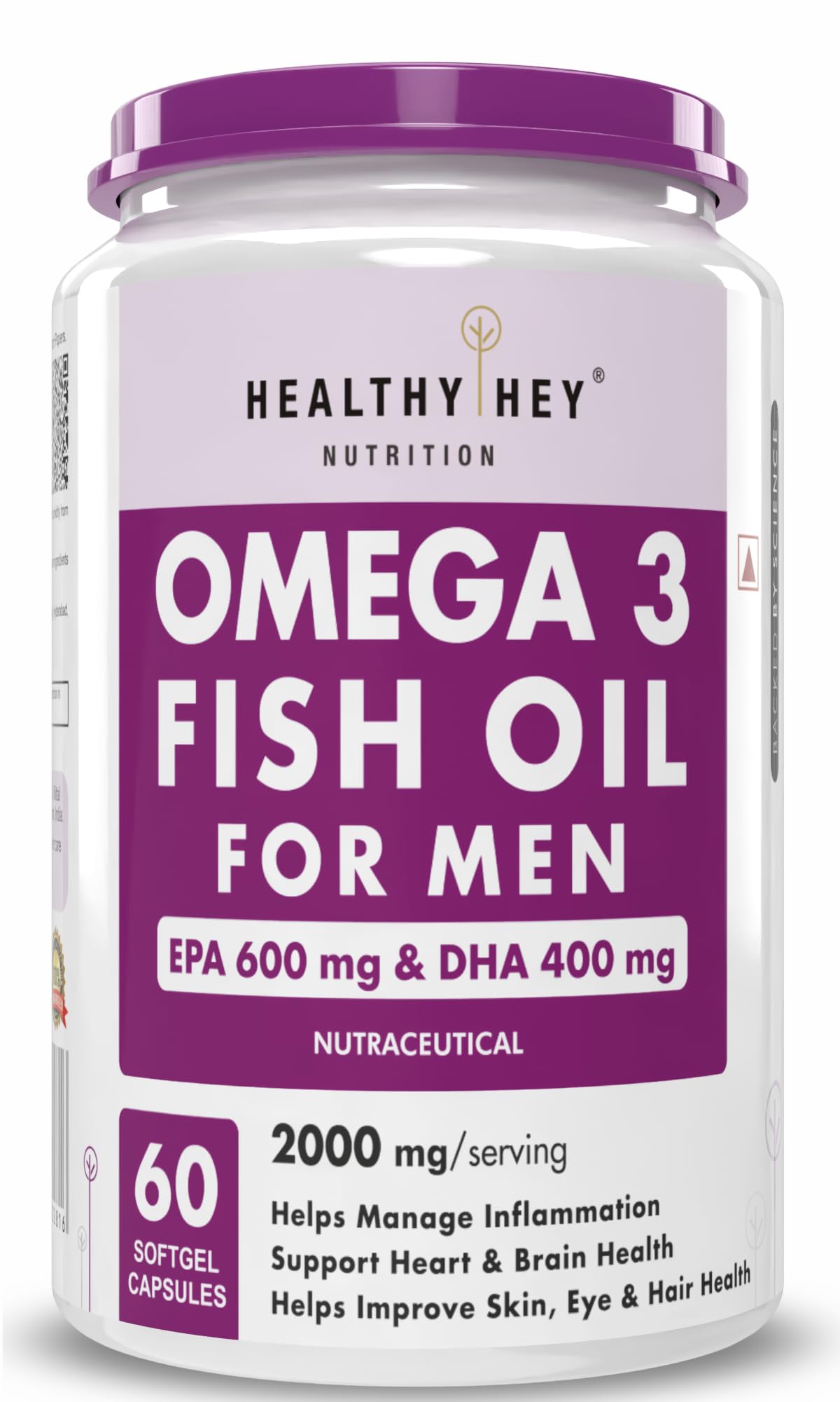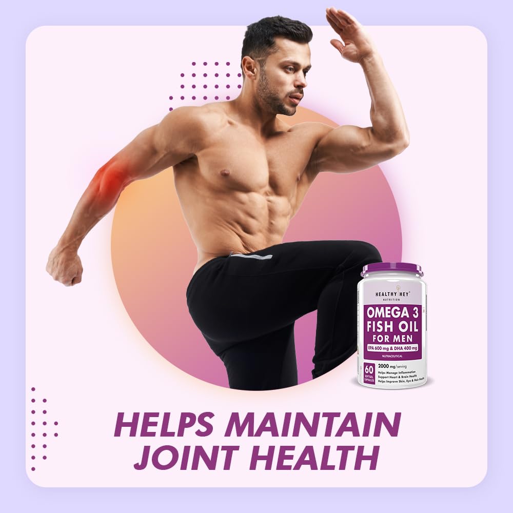 HealthyHey Nutrition Omega 3 Fish Oil for Men - 2000 Mg/serving - 60 Softgel Capsules (600 EPA & 400 DHA)