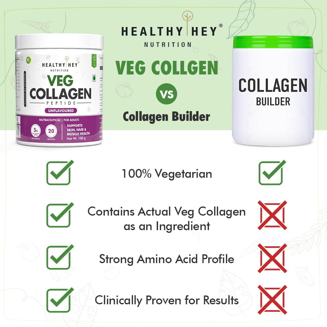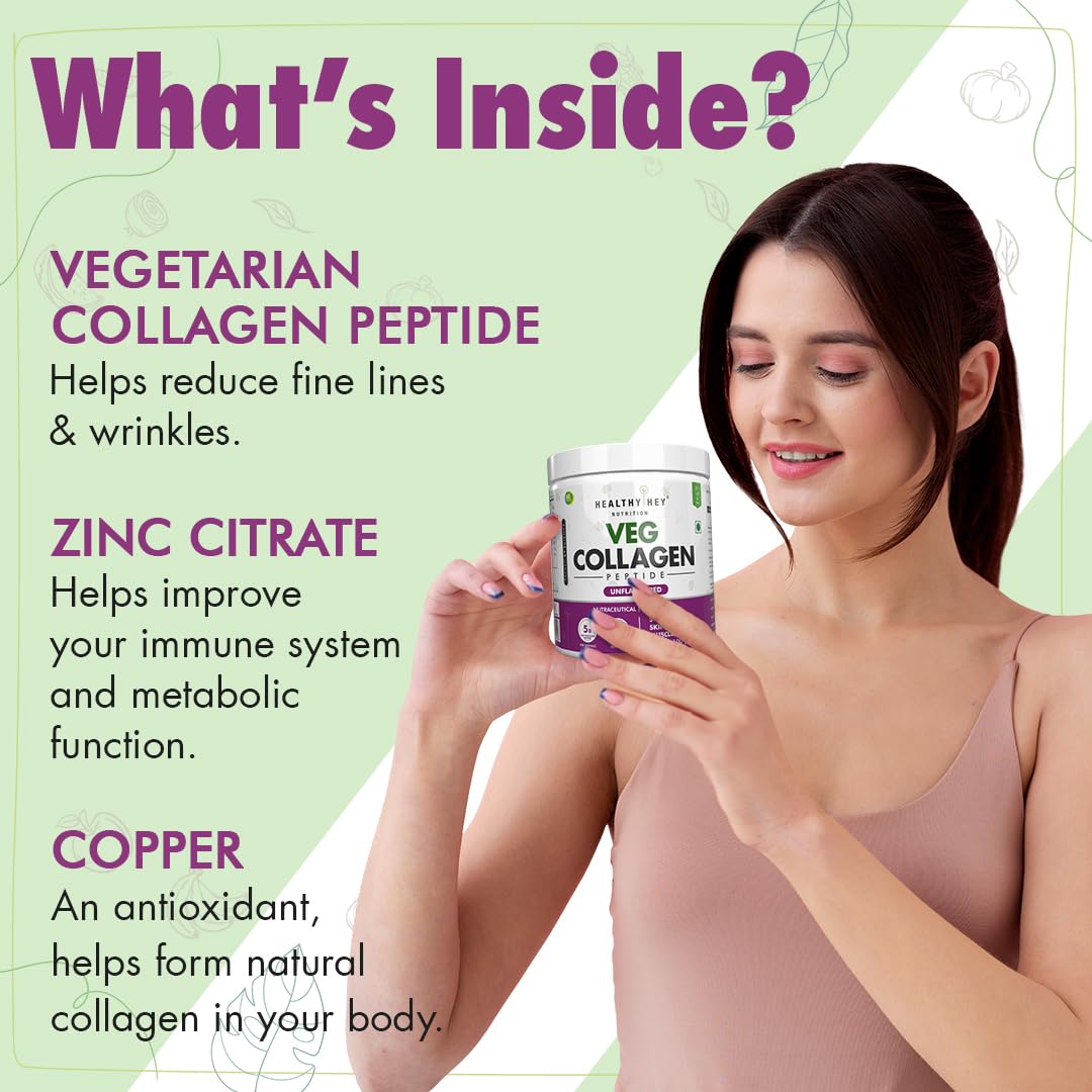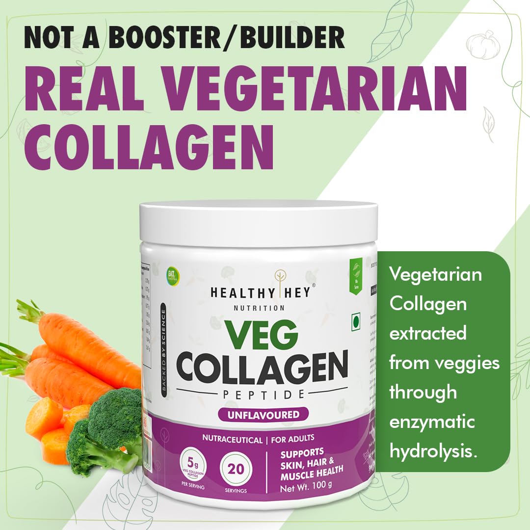 HealthyHey Nutrition Veg Collagen Peptide - Unflavoured - 100gm | Supports Skin Hair & Muscle Health