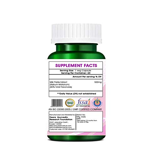 Heera Ayurvedic Research Foundation Milk Thistle extract 60 PCS. Veg Capsule (500 mg)