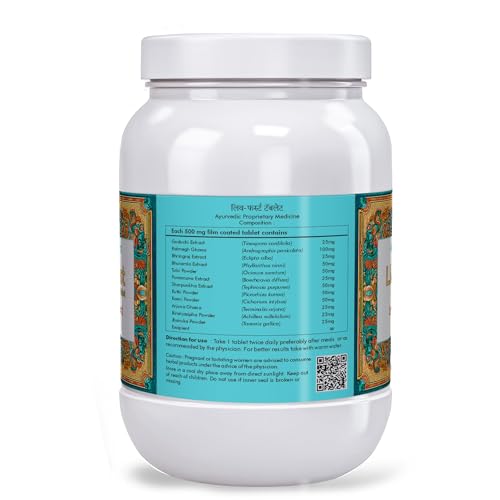 Ingredients: Each Film Coated Tablet contains Guduchi Extract 25mg Kalmegh Gaha 100mg Bhringraj Extract 25mg Bhuiamla Extract 50mg Tulsi Powder 50mg Punarnava Extract 25mg Sharpunkha Extract 50mg Kutki Powder 50mg Kasni Powder 50mg Arjuna Ghana 25mg Biranjasipha Powder 25mg Jhavuka Powder 25mg ExcipientsXanthan Gum Maize Starch Magnesium Stearate Silicon Dioxide HPMC
