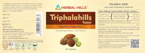 Herbalhills triphala i ordered which was in a tablet form lost its potency 1 day after i opened the bottle to consume the first tablet. you can only feel Amla until the bottle is empty but not T.chebula & T.bellerica because the Air nullifies the potency of T.chebula & T.bellerica on the first day of use. NEVER BUY HERBAL SUPPLEMENT IN THE TABLET FORM !!