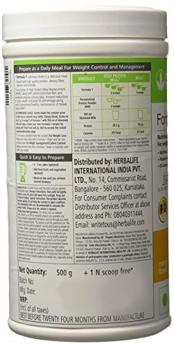 Formula 1 nutritional shake mix 500g gives you a fair advantage about the weight loss program which you've targeted. Get your own shape by using Herbalife protein shake mix usage - simply beat stir or shake approximately 25 grams(approximately 3 tablespoons") formula 1 with 250ml of water skimmed milk or juice as per your choice + add 1 tablespoon of formula 3 ( personalized protein powder ) and enjoy your Herbalife shake.