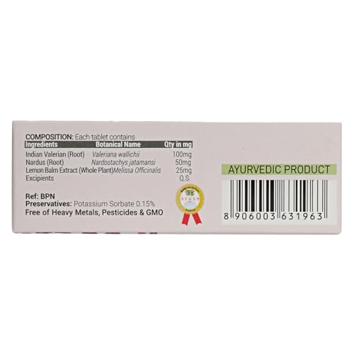 Ingredients - Indian Valerian (Root): Known for its calming properties.