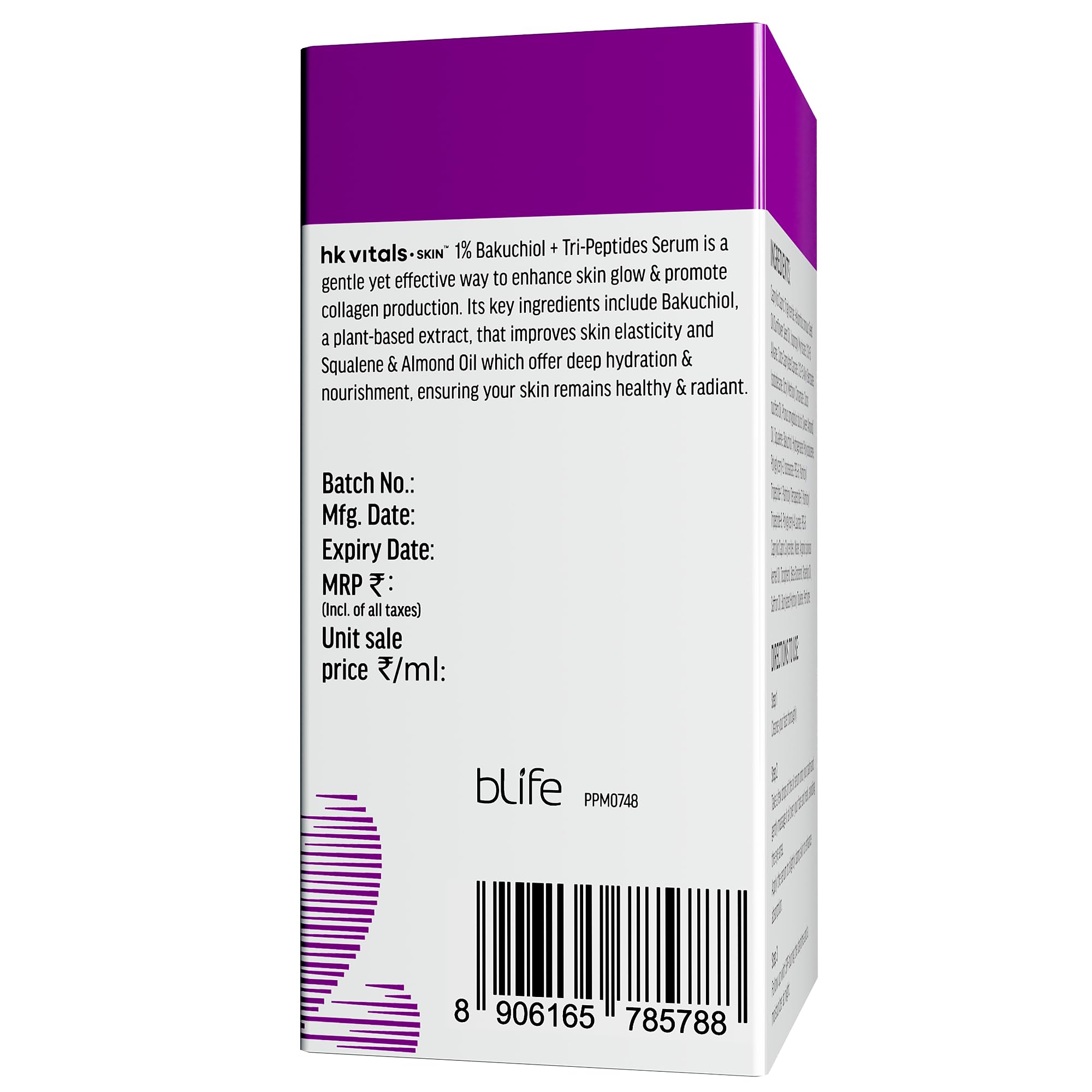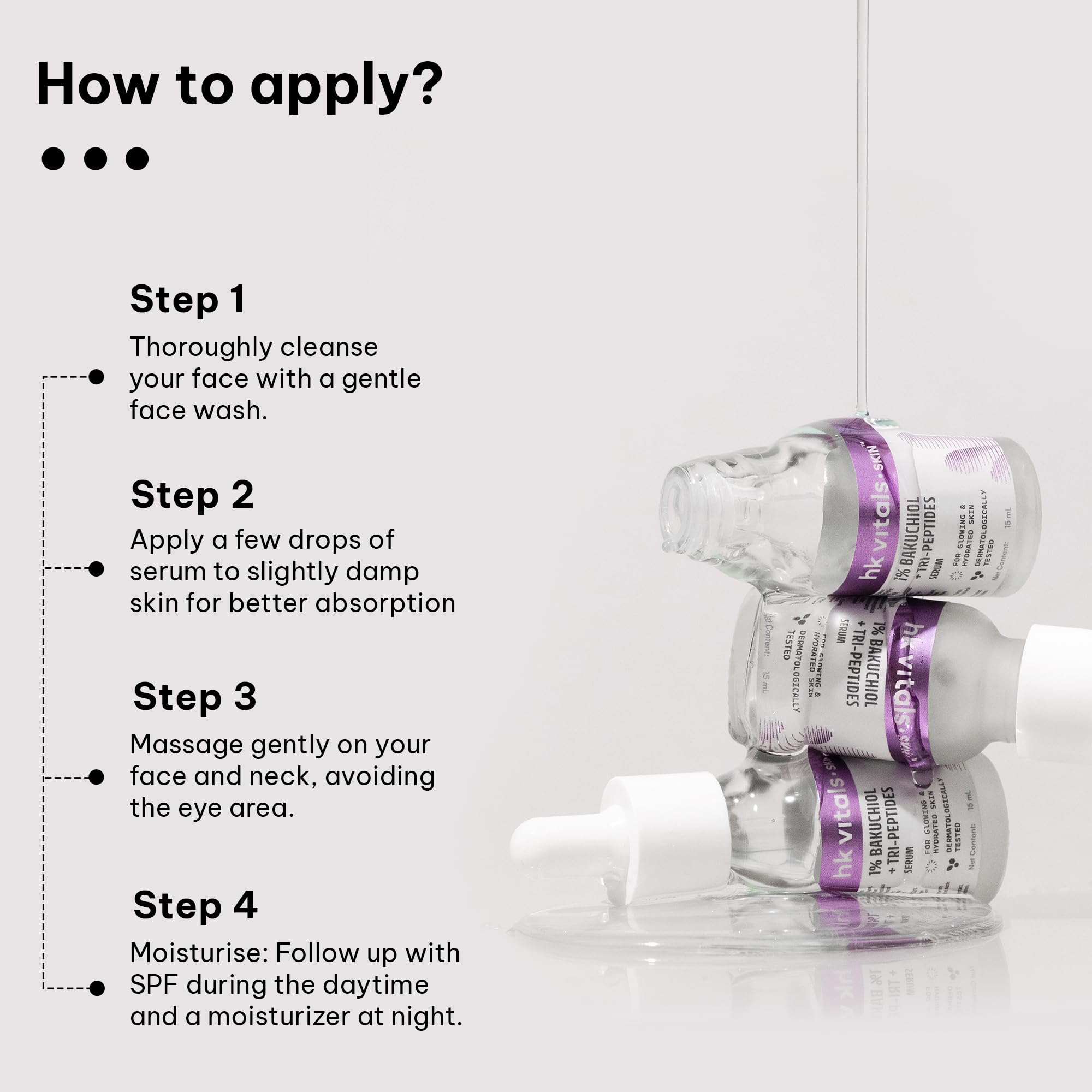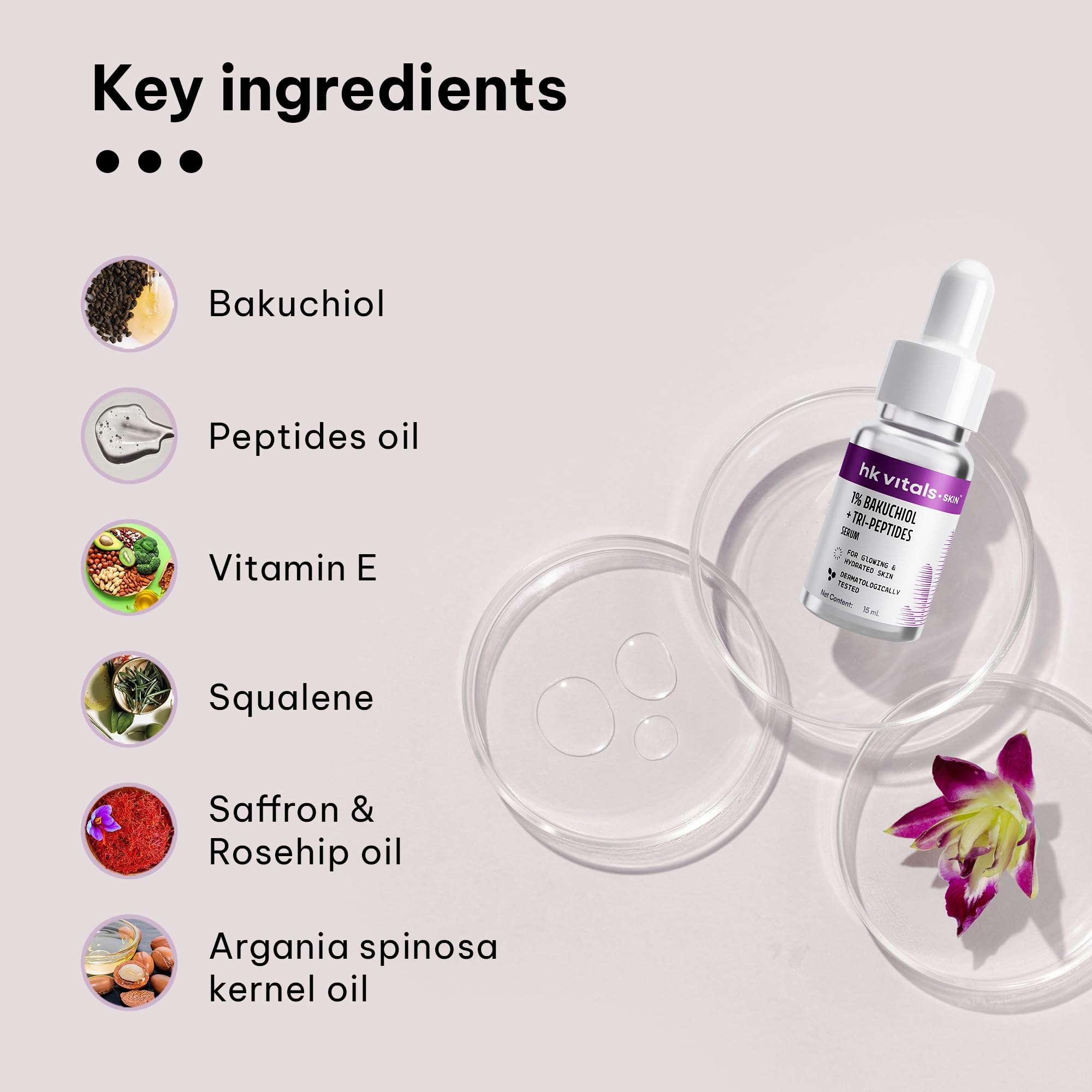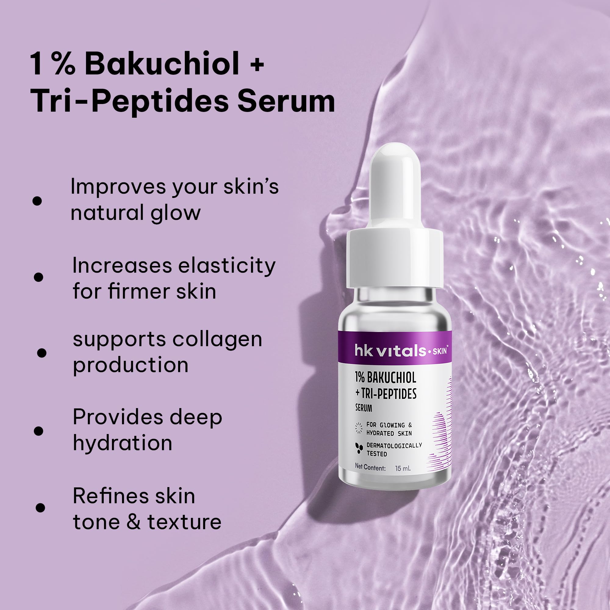 DERMATOLOGICALLY-TESTED FOR SAFETY: hk vitals 1% Bakuchiol + Tri-peptides Serum is dermatologically-tested to ensure safety and suitability for Indian skin. This lightweight non-greasy face serum is formulated to prevent common side effects such as rednes