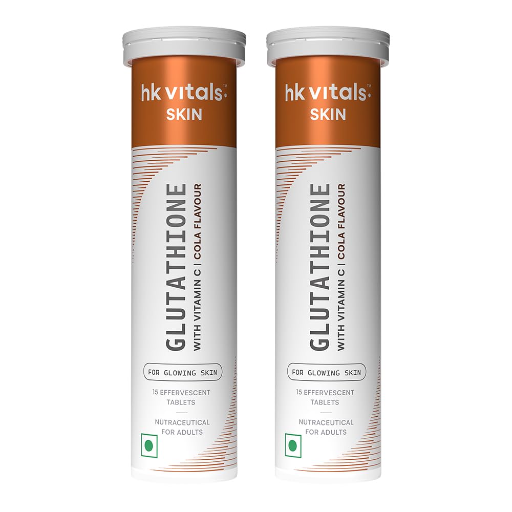 hk vitals Glutathione (Cola 15 Effervescent Tablets) | L-Glutathione Tablets with Vitamin C & E | For Skin Glow & Hydration (Pack of 2)