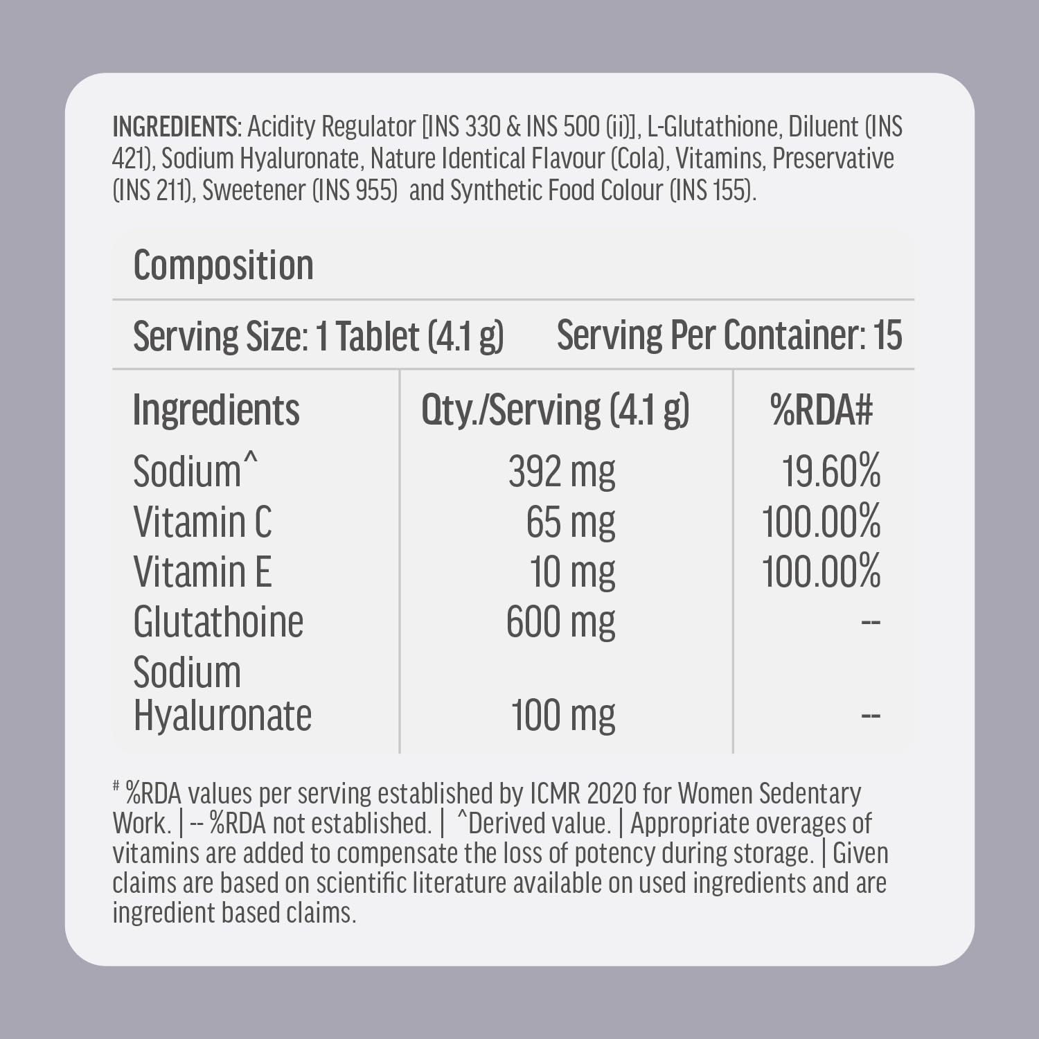 • RECOMMENDED DOSAGE: One hk vitals Glutathione Effervescent tablet daily will help improve your skin glow & reduce pigmentation
