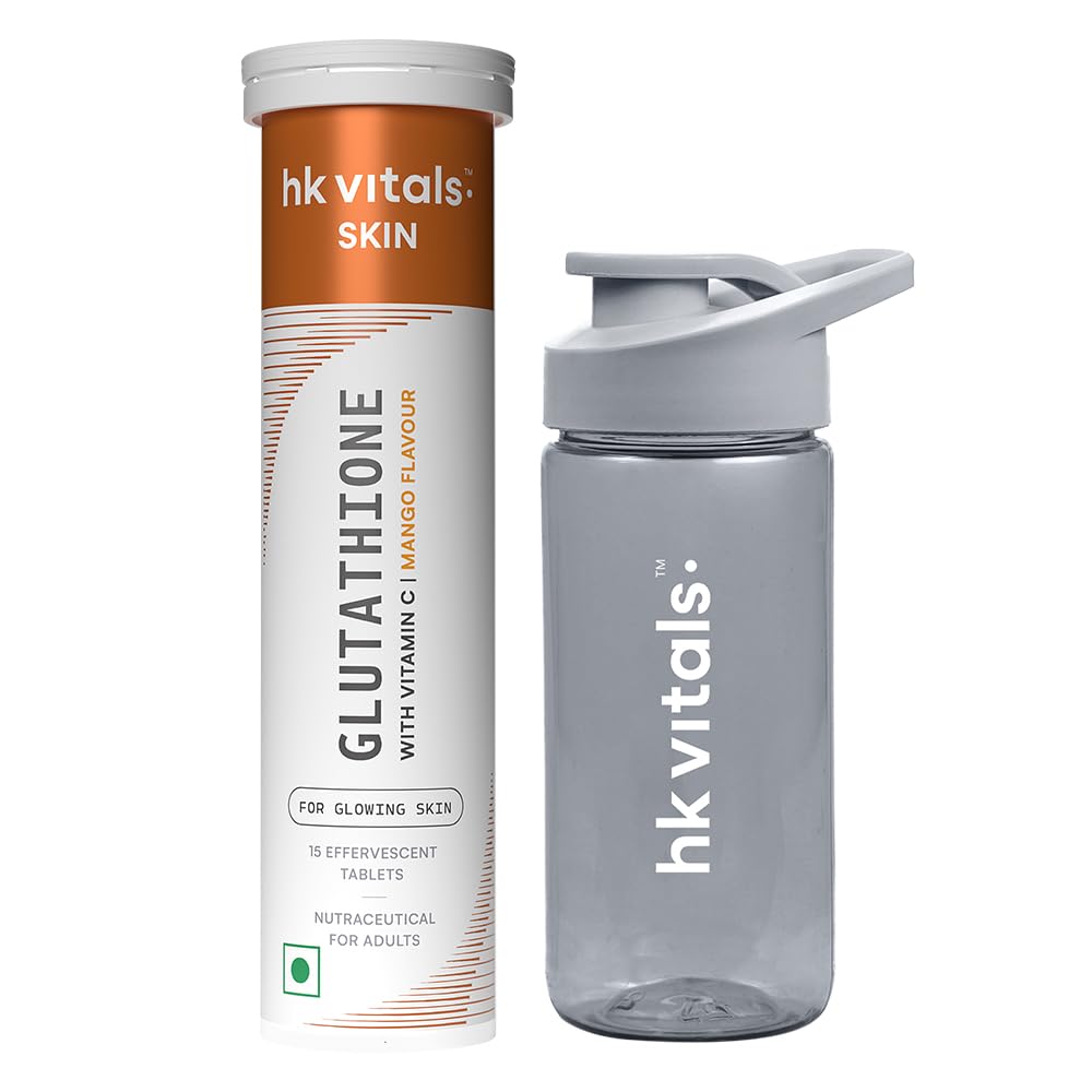hk vitals Glutathione (Mango 15 Effervescent Tablets) | L-Glutathione Tablets with Vitamin C & E | For Skin Glow & Hydration with Sipper
