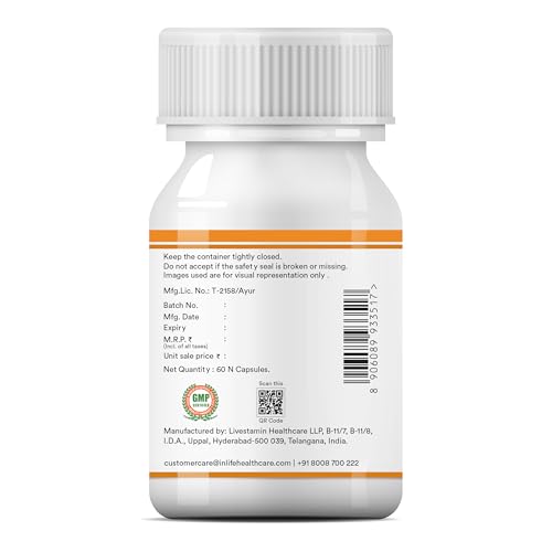 Inlife Ashwagandha KSM-66 capsules deliver a high-quality Ashwagandha root extract known for its potency and purity. Standardized to contain more than 5% Withanolides these Ashwagandha capsules are a natural and effective addition to your daily routine. Encapsulated with HPMC (Hydroxypropyl Methylcellulose) they are suitable for vegetarians and free from artificial additives. Each bottle contains 60 vegetable capsules providing an easy way to incorporate Ashwagandha into your diet. Key ingredients include Ashwagandha Root Extract (KSM-66) renowned for its high potency and purity and HPMC used for making the vegetarian capsules. The suggested dosage is one capsule daily before a meal or as directed by a healthcare professional. Inlife health supplements are manufactured in an FSSAI Ayush (Herbal/Ayurvedic) WHO-GMP ISO 22000:2005 certified facility ensuring the highest standards of safety accuracy and quality. Each batch is produced under stringent GMP guidelines featuring high-quality ingredients sourced and formulated to deliver optimal results.