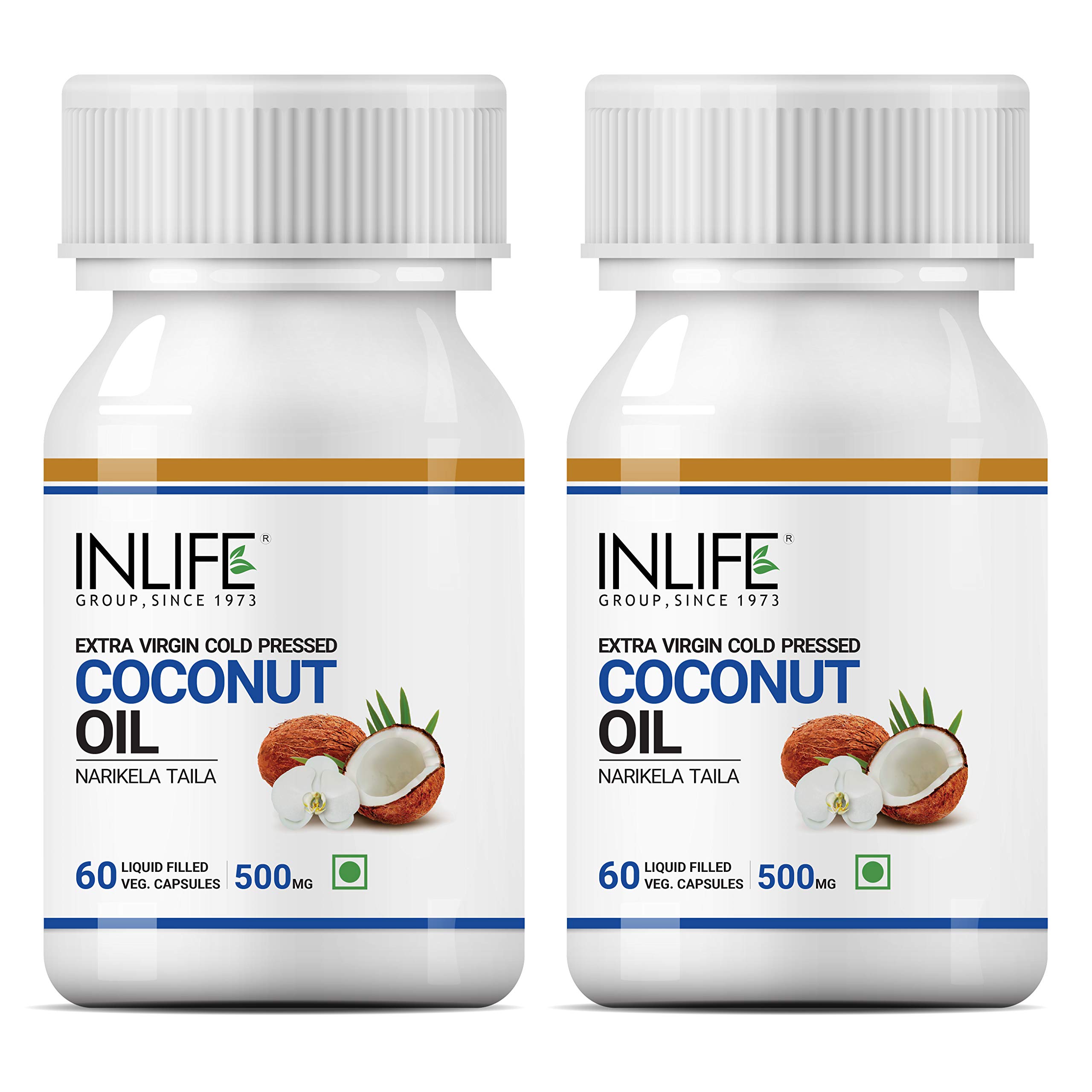 Inlife offers pure Coconut Oil encapsulated in Liquid Filled Vegetarian Capsules. Advantages of liquid filled capsules over softgels: Contains no plasticizers Improves product stability Low moisture intake Effectively masks taste & odour Band sealing prevents leakages Tamper proof capsules Offers enhanced bioavailability One of the main advantages of liquids is that they are absorbed directly by the body without going through break down stages. Active ingredients in liquid form should therefore be absorbed faster than in solid form. Coconut oil is nature's answer to all skin and hair related problems. Coconut oil has been tradionally used for centuries for loss of hair dryness in scalp brittle hair and split ends. The deep nourishing property of coconut oil makes it an ideal moisturizer for dry and flaky skin. The natural antifungal and antiviral properties of coconut oil are useful for all skin problems. Vitamin E and Lauric Acid present in the oil helps reduce the effects of free radicals and oxidative stress from affecting the skin cells and helps makes it appear youthful and supple. Coconut oil also promotes growth of hair reduces all possibility of hair to fall and breakages supplies necessary nutrients to the hair follicles fights dandruff and leaves it looking glossy and full of life. It is natural ayurvedic product. Suggested Usage: Take 1 capsule 2 times daily after meals or as directed by a healthcare professional.