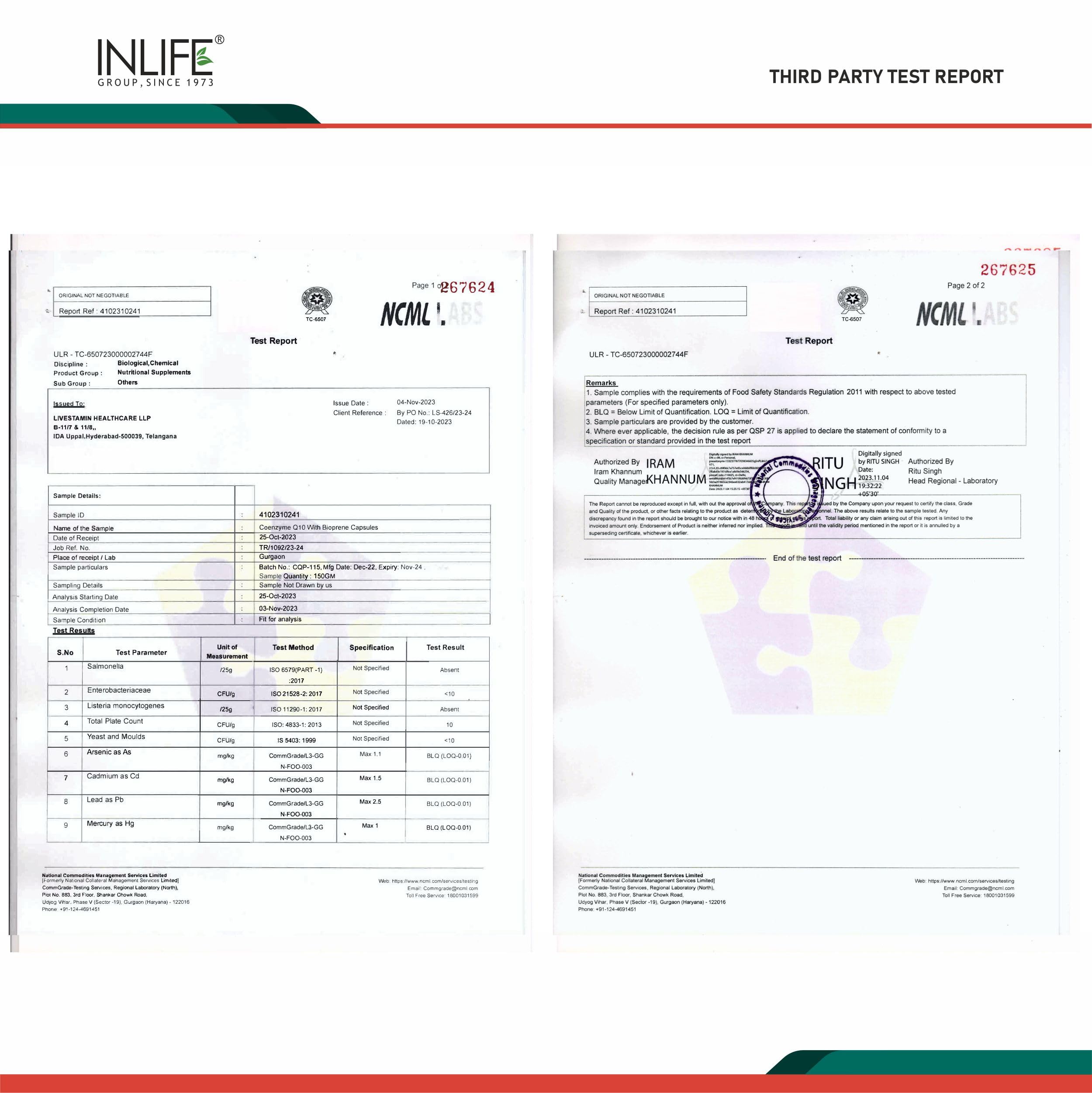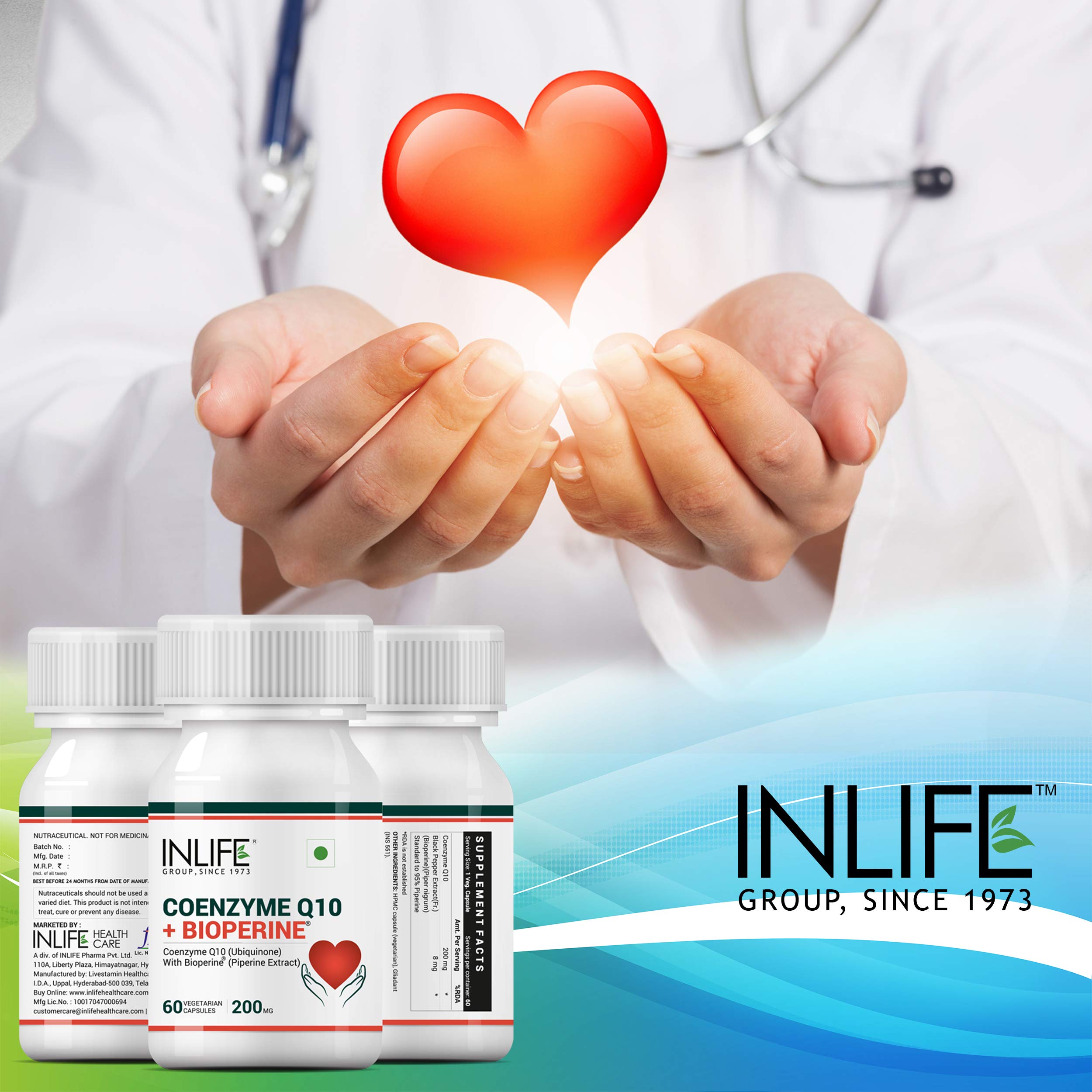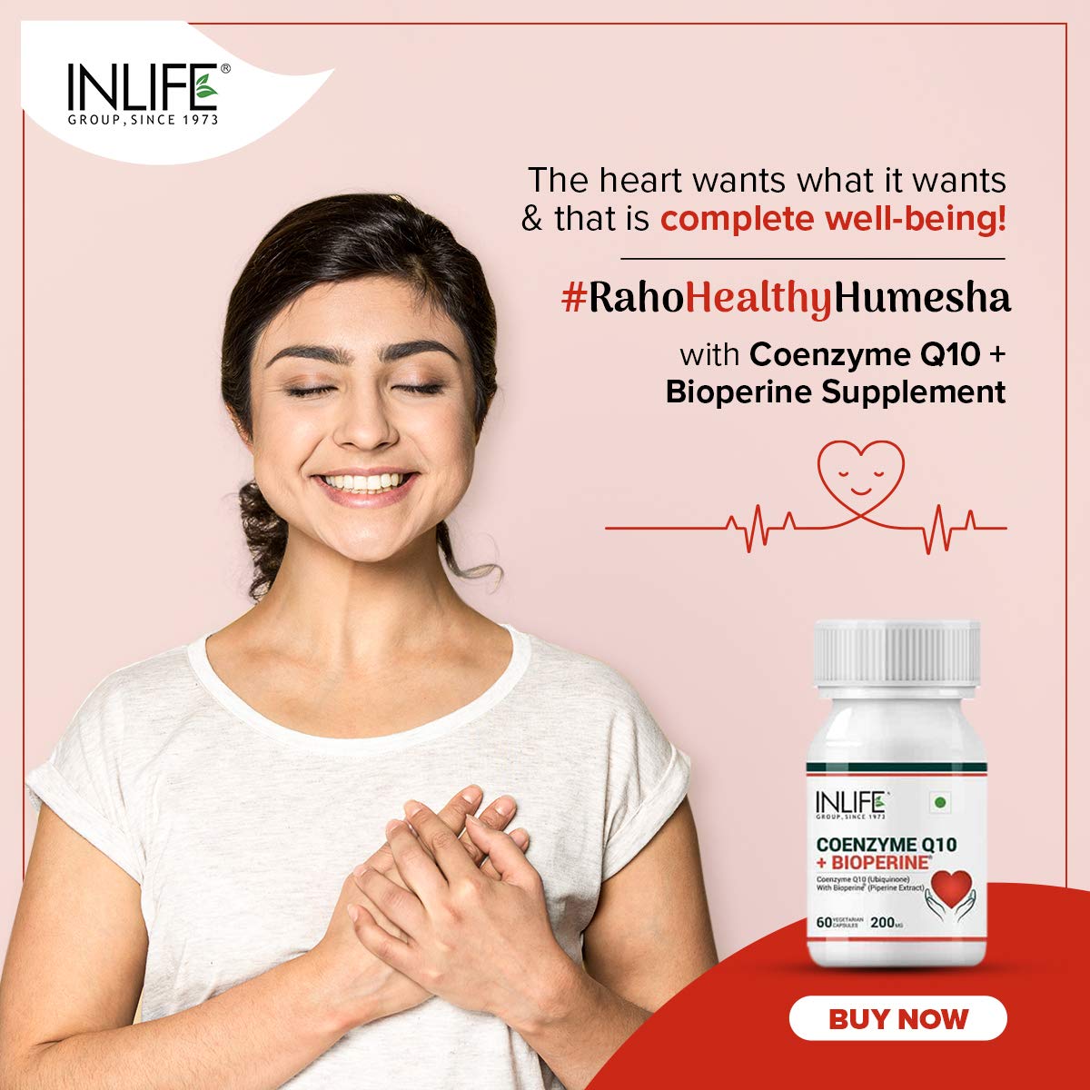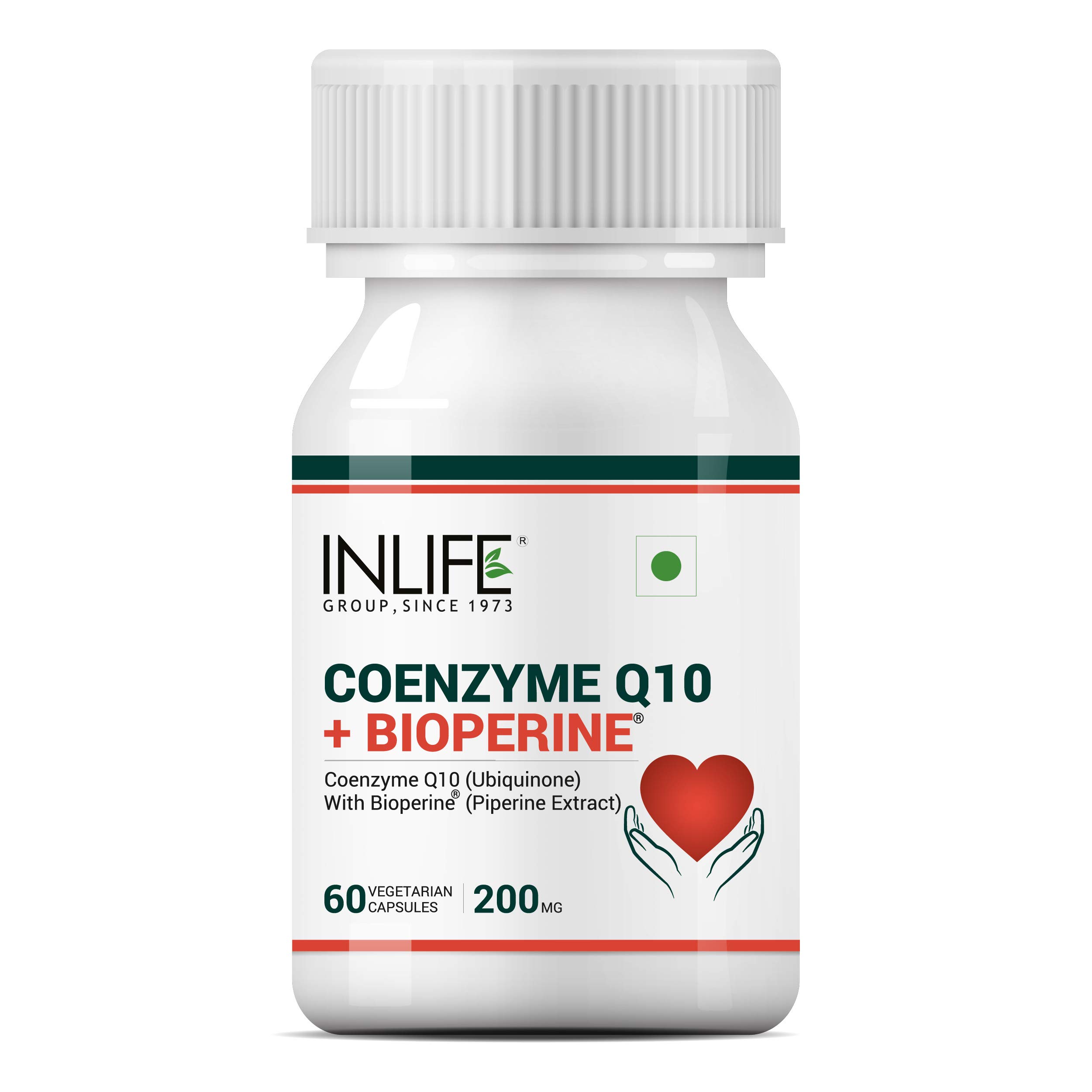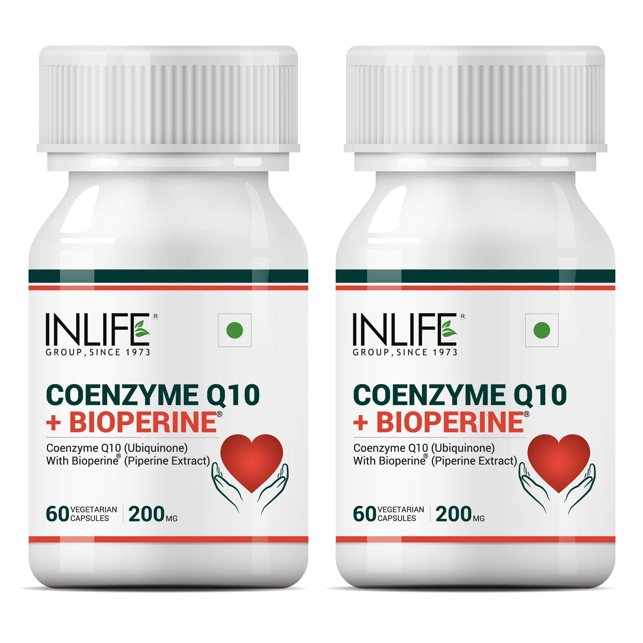 INLIFE Coenzyme Q10 CoQ10 200mg with Bioperine (Piperine) 8mg Supplement - 60 Vegetarian Capsules (200mg) (Pack of 2 120)