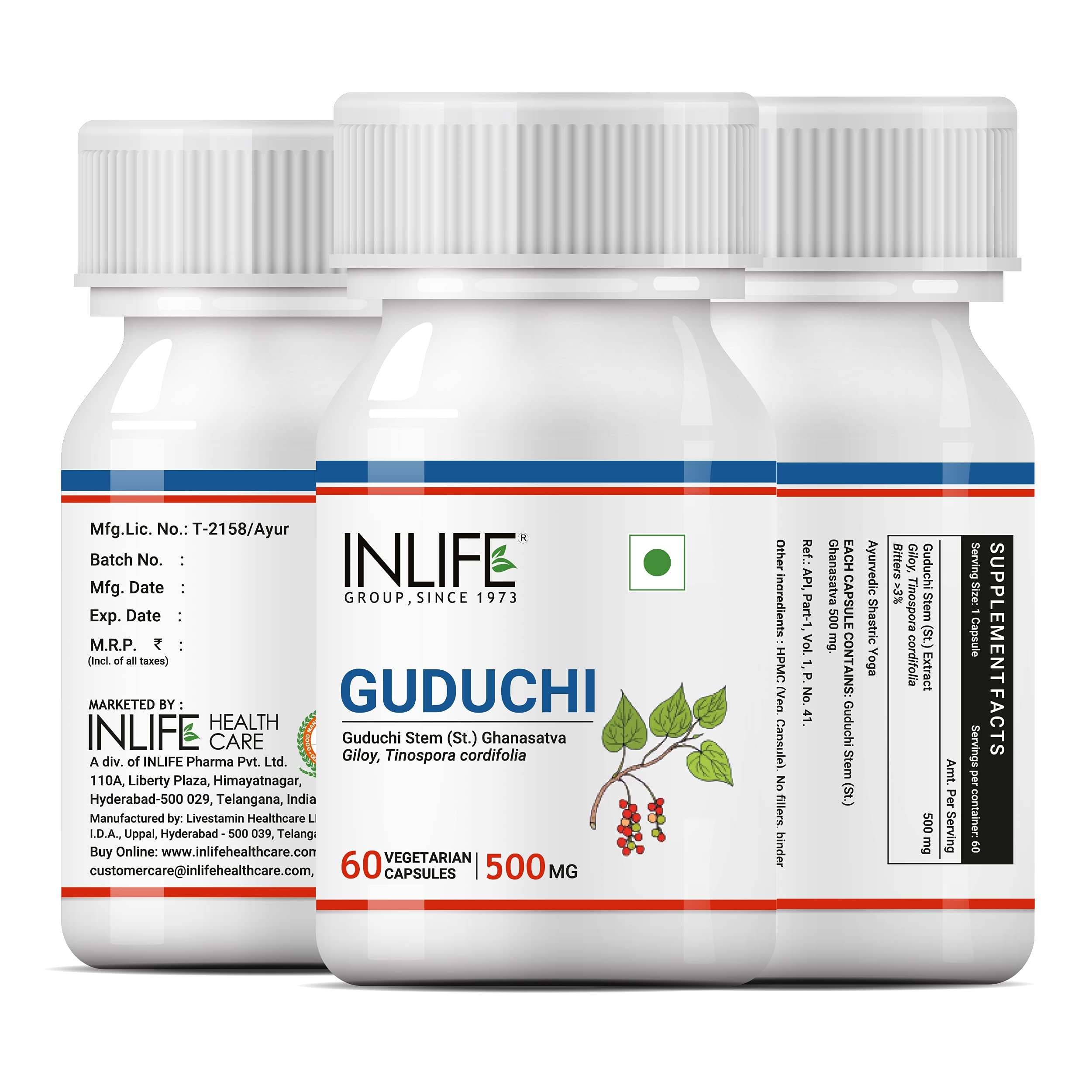 INLIFE Guduchi Giloy (Tinospora Cordifolia) Stem Extract for Immune Support Supplement 500mg â 60 Vegetarian Capsules (Pack of 2)
