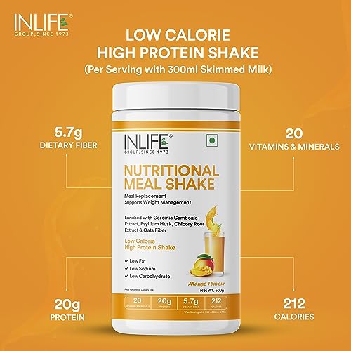 11 grams of clean protein with 27 essential vitamins and minerals and 3.09 grams of Dietary Fibre to keep you satisfied. Contains protein derived from Whey Protein Concentrate Soya Protein Isolate and Calcium Caseinate. It is enriched with Ayurvedic herbs like Garcinia Cambogia Green Tea Extract Green Coffee Bean extract that fights cravings and helps in weight management. Upto 70% lesser calories when compared to an average Indian meal. Contains NO ADDED SUGARS. Inlife Nutritional Meal Shake is manufactured in an ISO 22000 GMP certified manufacturing facility following WHO-GMP guidelines so you can be sure about the quality. No added preservatives no gluten no artificial flavours no animal extract.