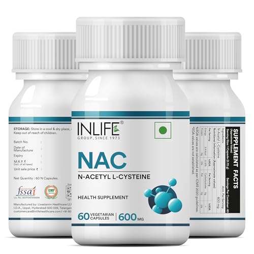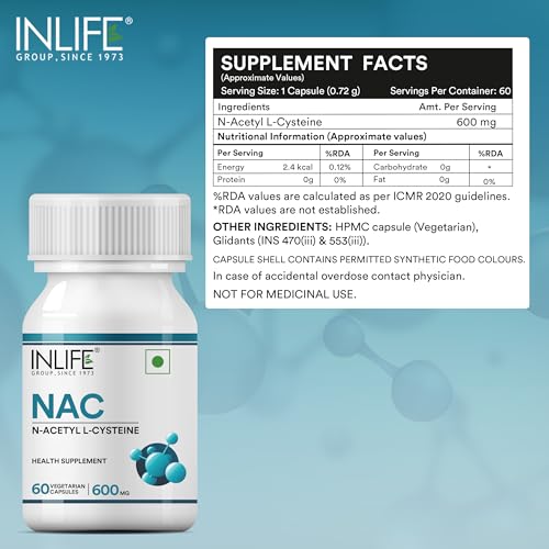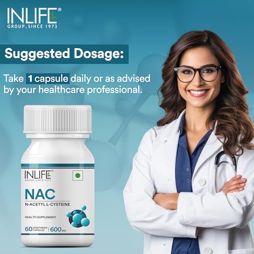 INLIFE N Acetyl Cysteine NAC Supplement 600mg | Antioxidant, Supports Liver & Respiratory Health - 60 Vegetarian Capsules (Pack of 1)
