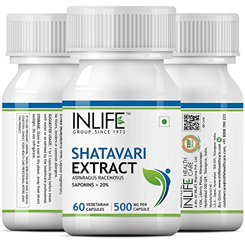 SHATAVARI CAPSULES: INLIFE Shatavari Extract Capsules contain safe natural ingredients and is manufactured to Quality standards. This Ayurvedic tonic helps support milk supply and aids in balancing the system. Each capsule contains 500 mg of pure Shatavari extract standardized to 20% Saponins. For optima results take 1 or 2 capsules daily before meals or as advised by your healthcare professional. NUTRITIVE TONIC: As a nutritive tonic Shatavari encourages healthy production of milk in lactating mothers. According to Ayurveda it is also useful for supporting the menopausal transition. Shatavari supports a healthy immune system and assists in both physical and mental digestion. BALANCE HORMONE LEVELS: Shatavari supplements aids in balancing female hormonal system. Helps to relieve from uncomfortable menopausal symptoms like hot flashes and night sweats. Supports the nervous system and eases your transition. It also helps to relieve from irritability mood swings vaginal dryness and occasional sleeplessness. PURITY: Our product contains the most natural and effective formulation of trusted natural ingredients that are carefully processed and manufactured in a GMP certified manufacturing facility so you can be sure that you're safe. Vegan and vegetarian friendly-INLIFE Shatavari extract vegetarian capsules is produced in gluten-free capsules and contains no artificial ingredients. Consider ordering one bottle for yourself and another for a friend or loved one. Keep each other motivated and reach your goals together and more quickly. INLIFE Healthcare stands by every quality product they make. We manufacture only premium and extra pure but high potency vitamins capsules pills tablets powders multivitamins supplements and natural herbal skin & personal care products for men women and children. Check INLIFE Healthcare out today!