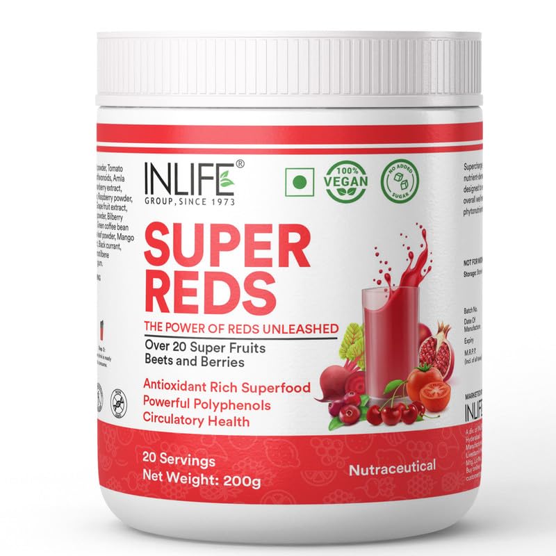 • What You'll Find in Every Bottle: INLIFE Super Reds comes in 200g bottle packing offering 20 servings of satisfaction. Each serving with its delightful Berry flavor is packed with over 20 antioxidant and polyphenol rich superfoods and berries.