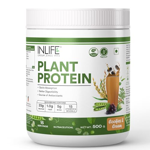 INLIFE Vegan Plant Based Protein Powder includes 24g of clean protein derived from Pea & Brown Rice Concentrate 1.8g of Dietary Fiber 5g of BCAAs. It is the best kind of protein powder if you want to improve your body composition. Not only is INLIFE Plant Protein full of high-quality protein but it also has the added benefit of digestive enzymes & dietary fiber to help you get the most out of each serving and puts the high-quality protein to work quickly and efficiently. INLIFE Plant Protein is formulated not only for an amazing taste but it also mixes easily and smoothly in your drink of choice. No chunks great flavour no stomach bloating. Nothing but high quality protein powder to fuel your muscles and a taste you will look forward to every time. Our product contains added Ayurvedic herbal extracts like Ashwagandha Green Tea & Grape seed along with the goodness of Turmeric. This supplement helps to keep your immune cells prime and ready for action supports normal immune function and improves your ability to cope with daily stress. Our Plant Protein has a clean profile to help you reach your nutrition and fitness goals in Vegan style. If you are planning to down calories or weight INLIFE plant based protein powder is the right choice that can get you there.