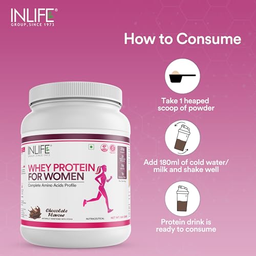 INLIFE Whey Protein for Women is the perfect womenâs complete protein shake with each serving offering 23g of clean protein derived from Whey protein Isolate and Concentrate. The superior and safe ingredients support weight management lean muscle development and recovery. Whey protein with Ayurvedic Herbs. They whey protein shake features age old Ayurvedic ingredients like Flaxseeds Tulasi extract Green Tea extract Shatavari extract that is good for your overall health and well-being. Biotin supports healthy Hair Skin and Nails as well as other benefits. We added it to INLIFE Whey Protein for Women so that your daily shake does more than just provide you protein. INLIFE Whey Protein for Women is also enriched with Vitamin & Minerals like Biotin Iron Zinc Vitamin A Vitamin D Vitamin C B-Vitamins etc to combat any form of deficiencies thereby improving your immunity & overall health. The blend of Ayurvedic herbs gives also support better metabolism. Not only is INLIFE Whey Protein for Women is full of high-quality protein sources but it also has the added benefit of digestive enzymes to help you get the most out of each scoop and puts the high-quality protein to work quickly and efficiently.