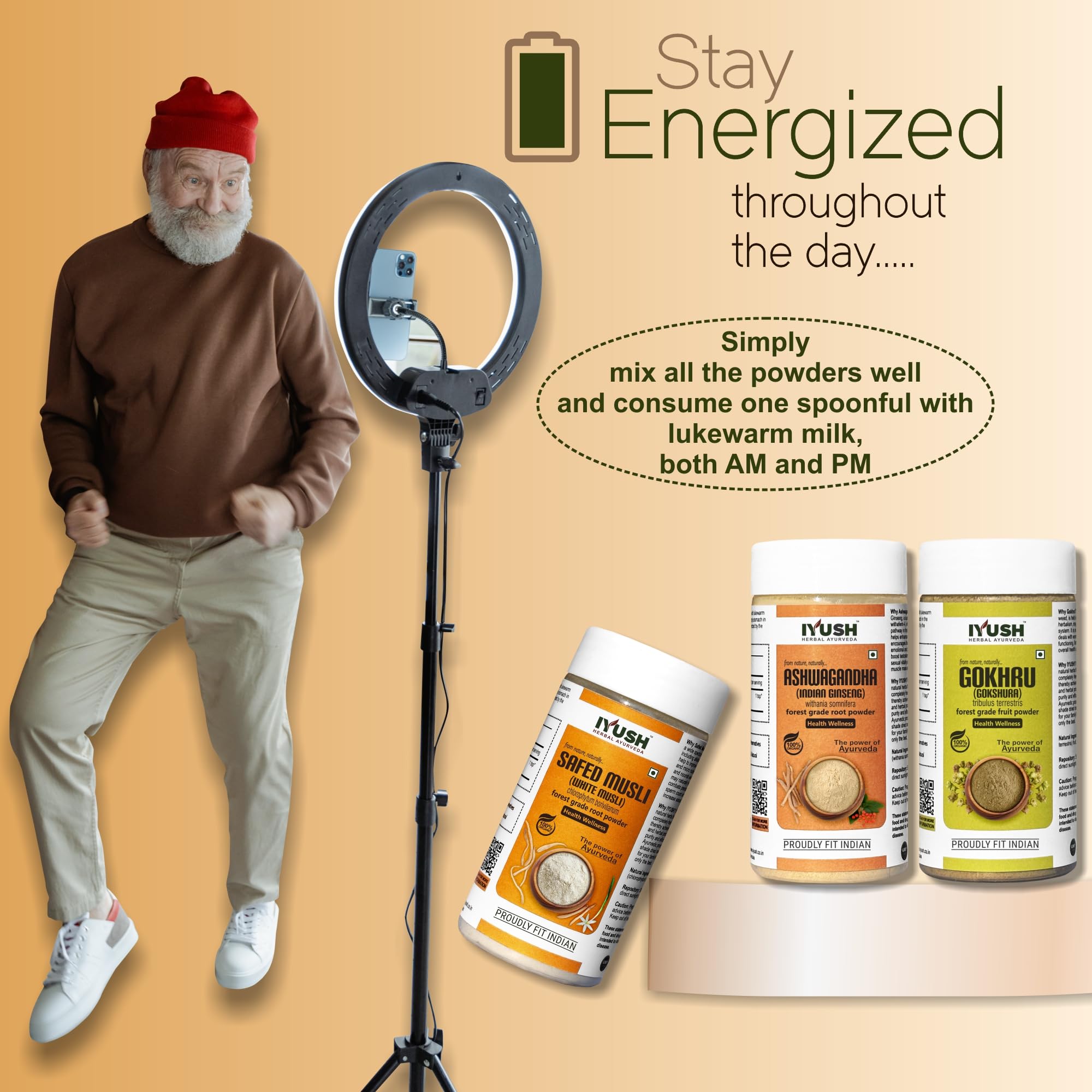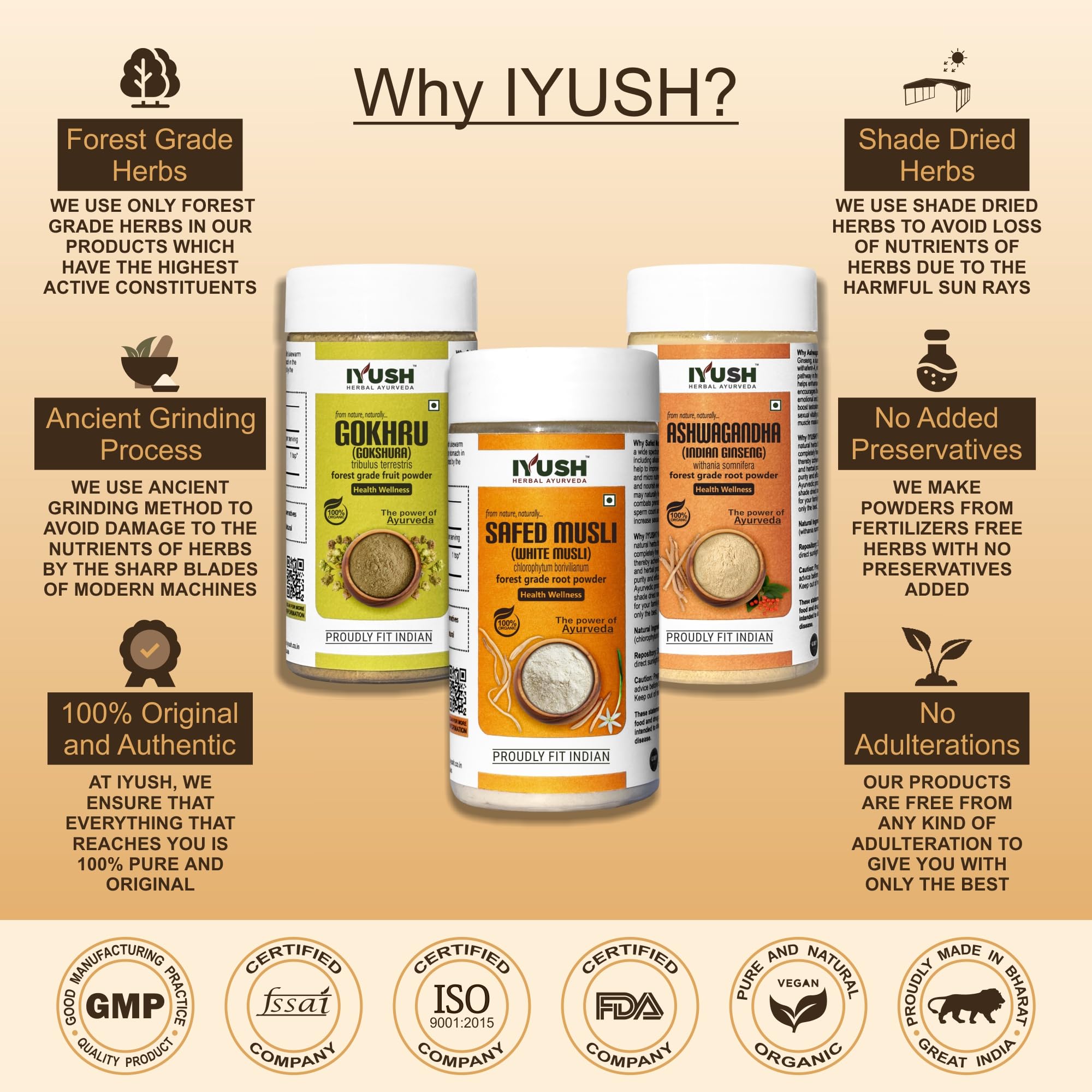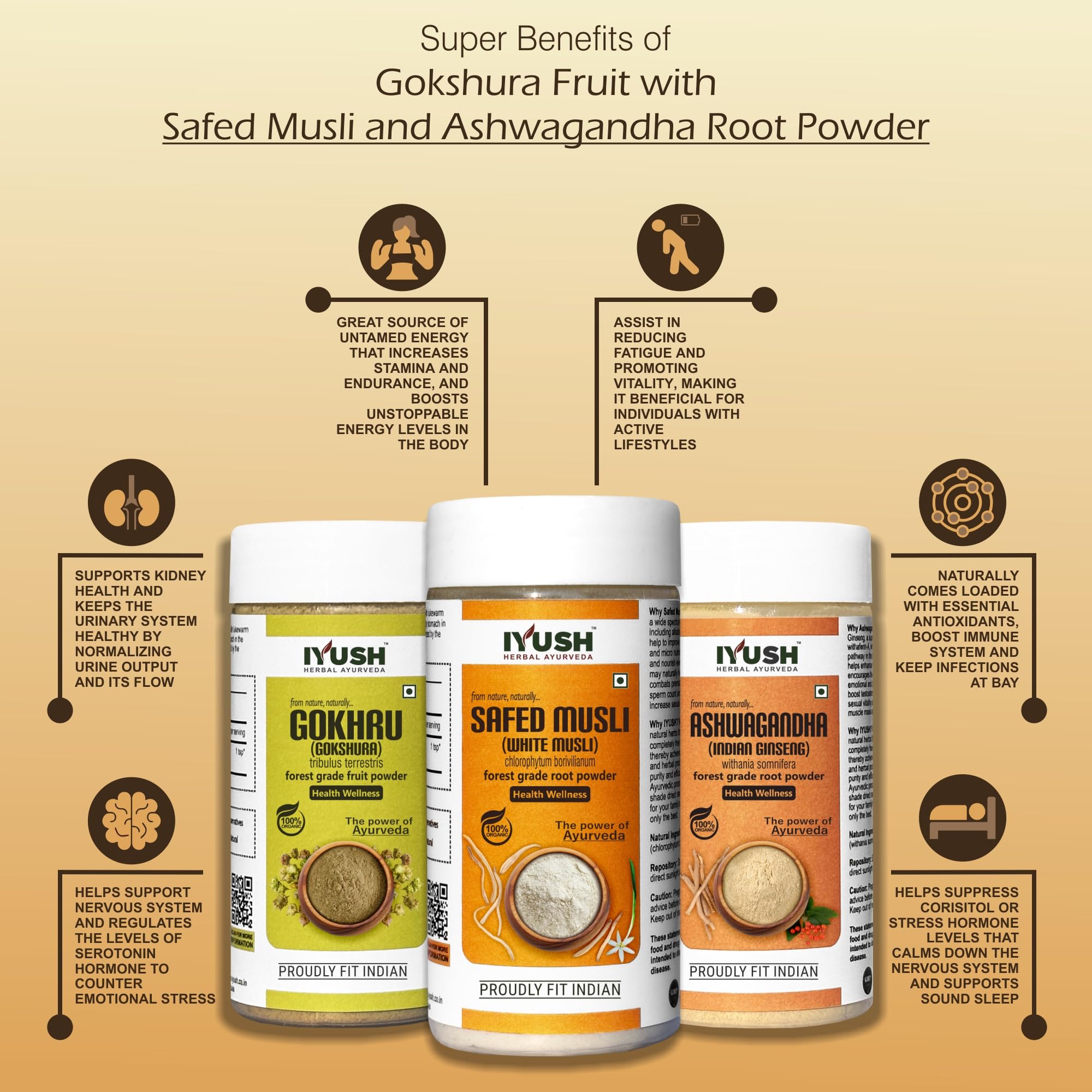 IYUSH Herbal Ayurveda Gokshura Ashwagandha Safed Musli powder (Pack of 3) - 100gm