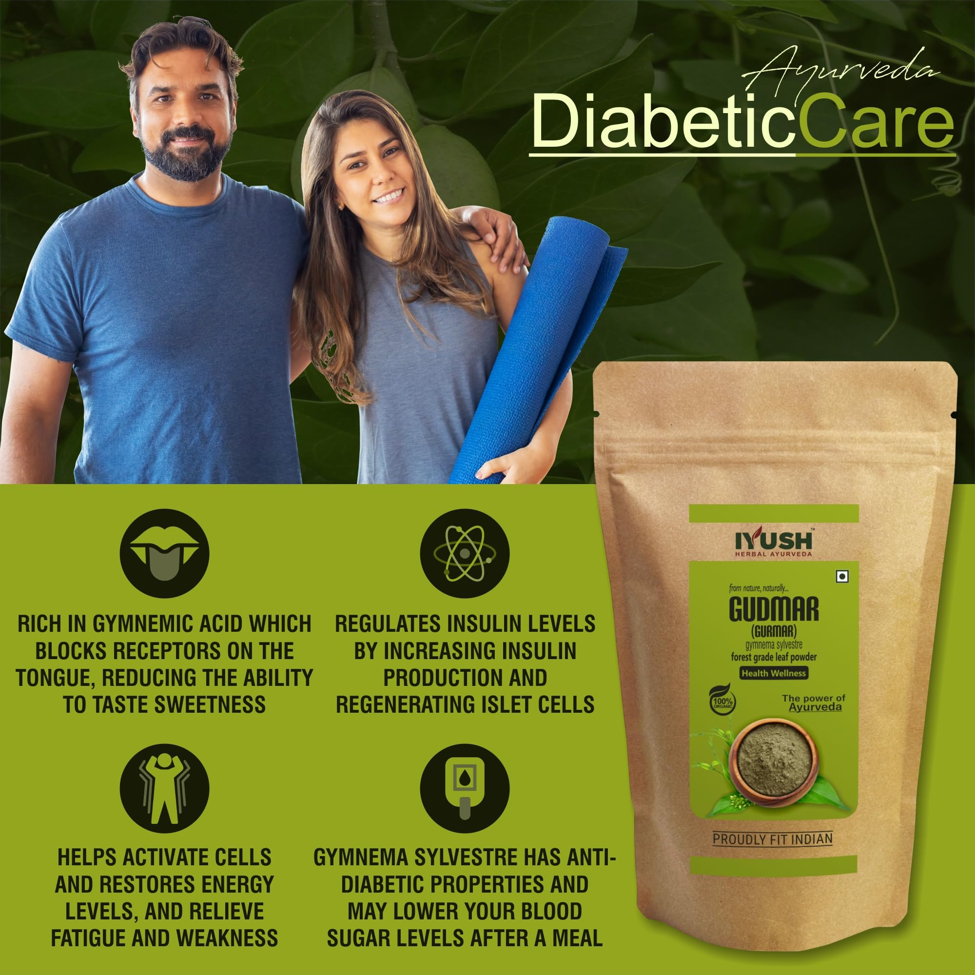 Gudmar also known as Gymnema sylvestre is a natural herb that has been used in Ayurveda for centuries for numerous health benefits. It is an organic healthcare powder made from shade-dried wild forest grade Gudmar leaves that contain the highest active nutrients grown naturally without any harmful chemicals or pesticides or fertilizers.