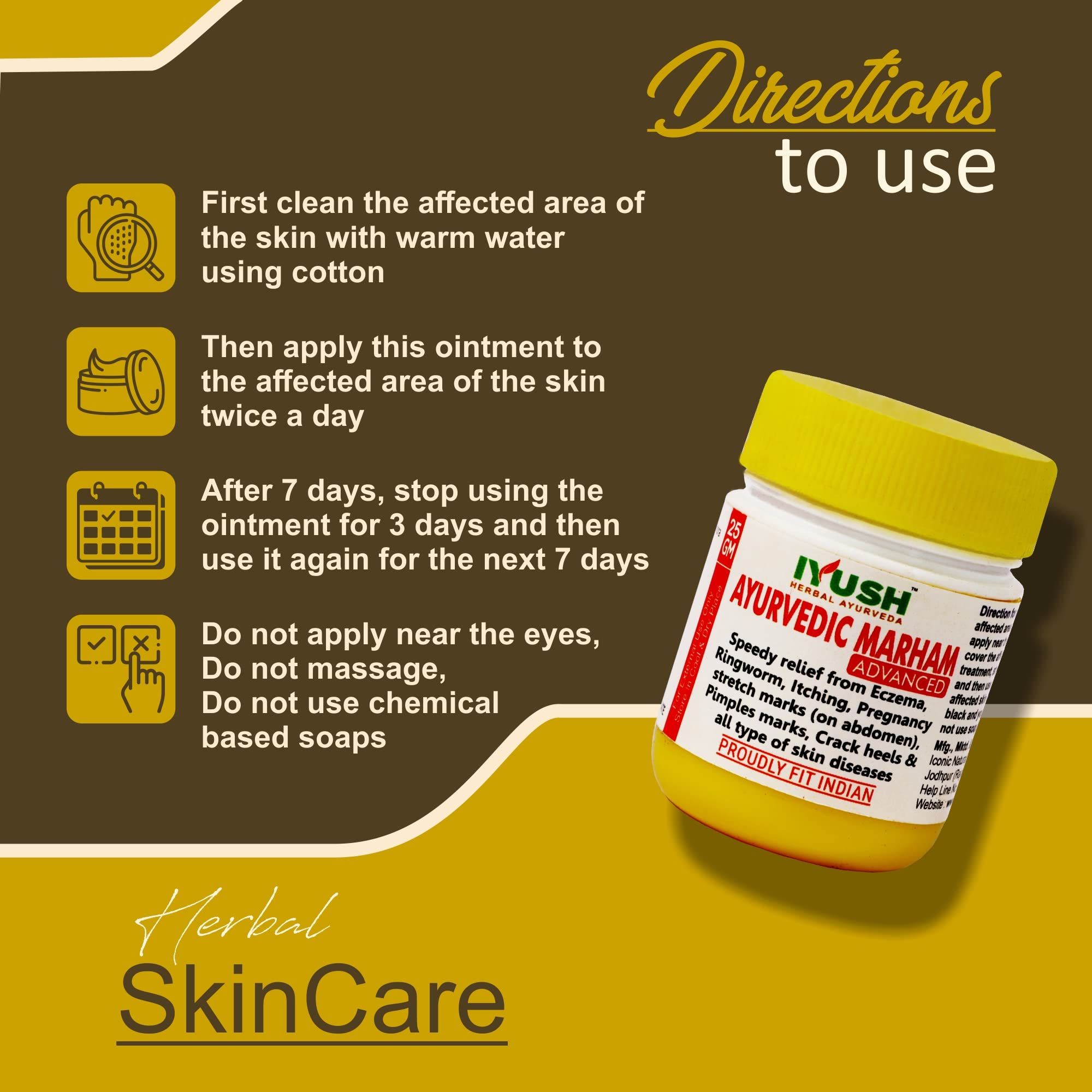 How to Use: First clean the affected area of the skin with warm water then apply this ointment to the affected area of the skin twice a day. After 7 days stop using the ointment for 3 days and then use it again for next 7 days. The affected skin removed a