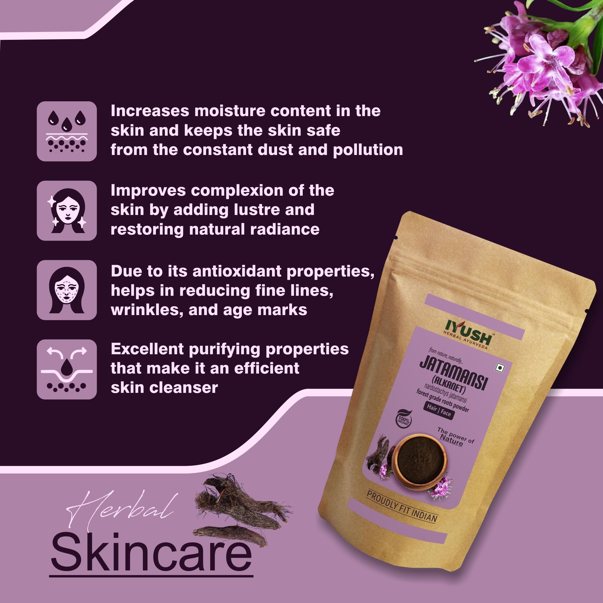Reducing Dark Spots: Due to its anti-inflammatory properties Jatamansi powder is used to soothe facial redness spots and skin inflammation.