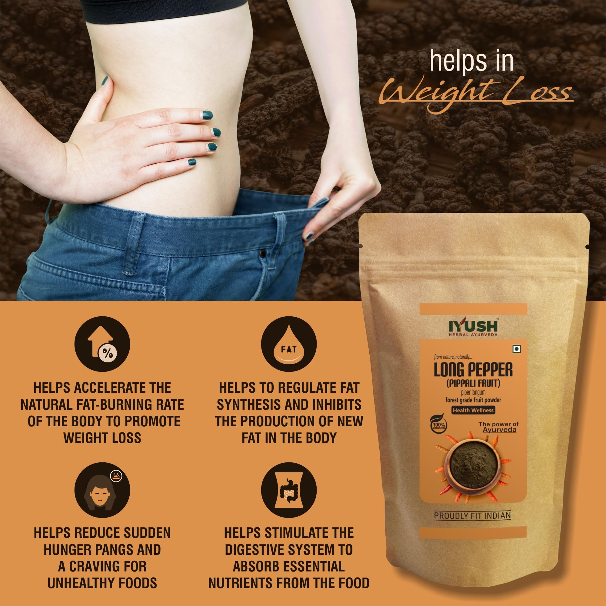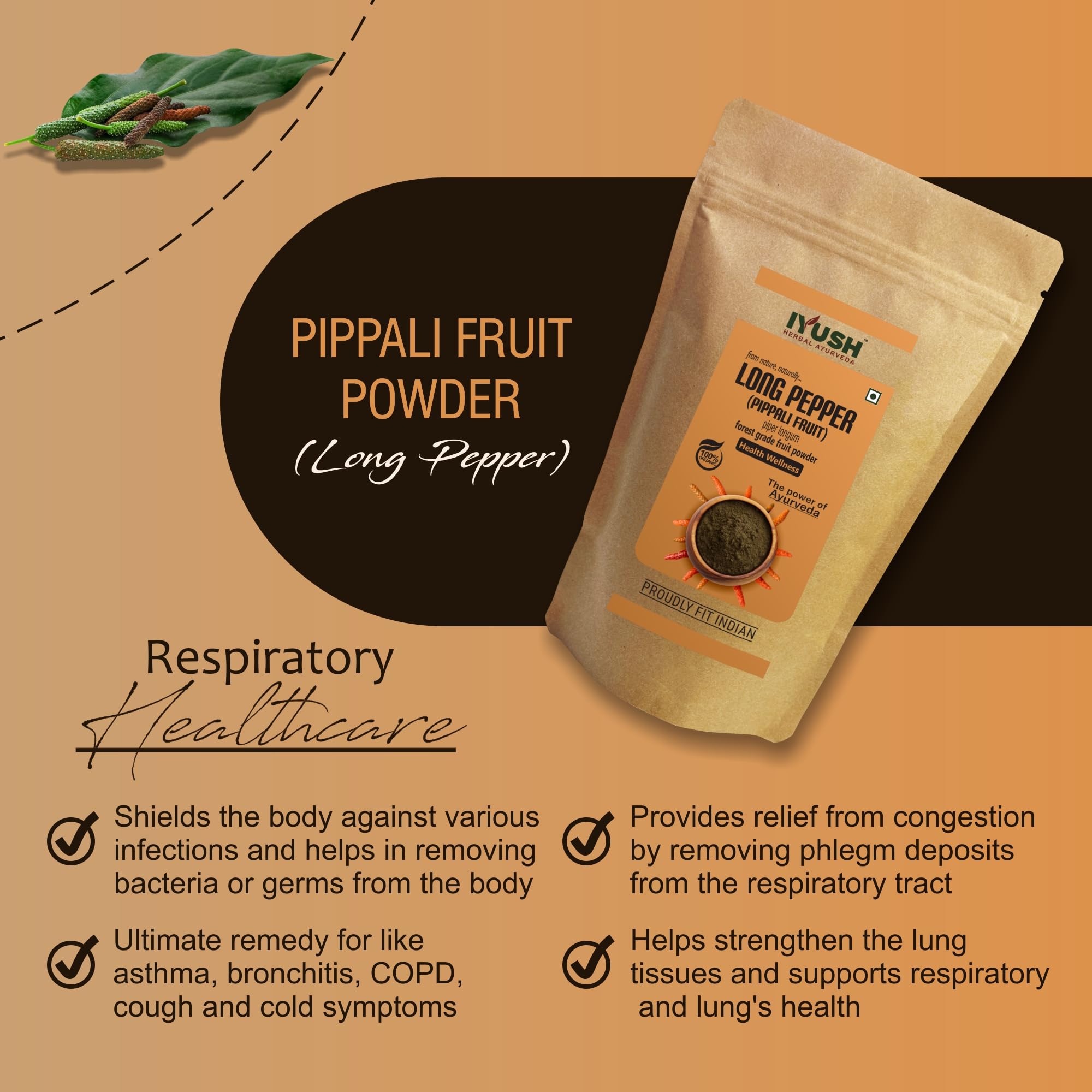 Pippali or Long Pepper also known as Piper longum is a natural herb that has been used in Ayurveda for centuries for numerous health benefits. It is an organic natural powder made from shade-dried wild forest grade Pippali fruit that contain the highest active nutrients grown naturally without any harmful chemicals or pesticides or fertilizers.