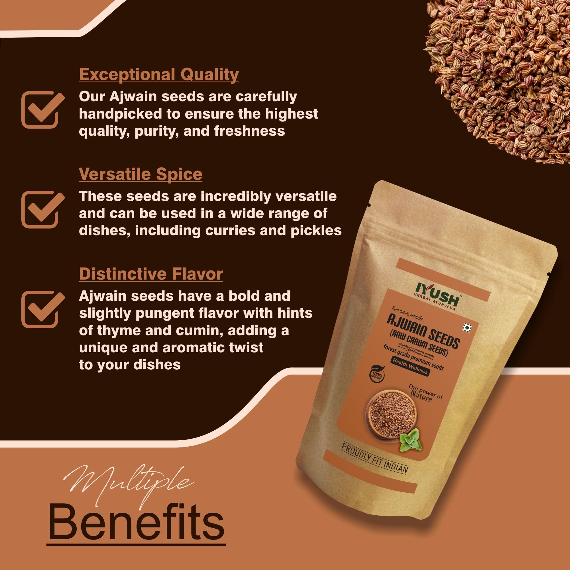 Discover the aromatic and flavorful world of our Ajwain Seeds sourced for their premium quality. These tiny seeds also known as carom seeds are a staple in culinary delights adding a distinct and savory note to your dishes. Renowned for their digestive properties Ajwain Seeds provide both taste enhancement and potential digestive support. Elevate your culinary experience with the rich and versatile profile of our Ajwain Seeds.