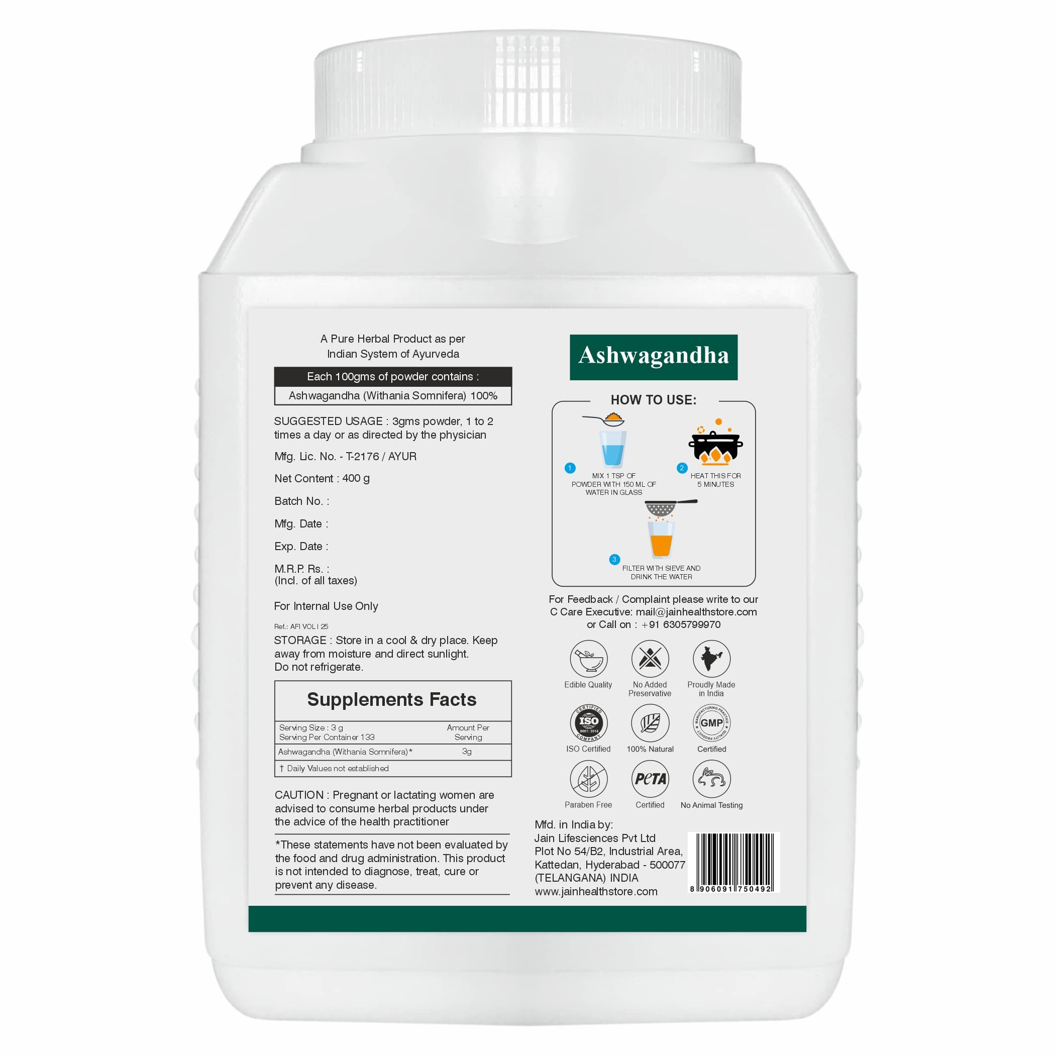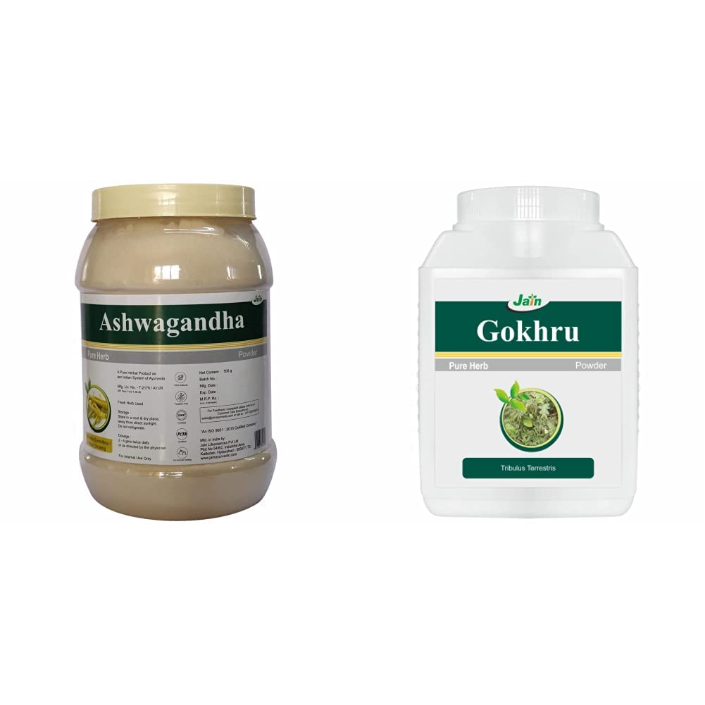 Jain Ashwagandha (Withania Somnifera) Powder 500 G & Jain Gokhru Tribulus Terrestris/Gokshura Powder 500 g