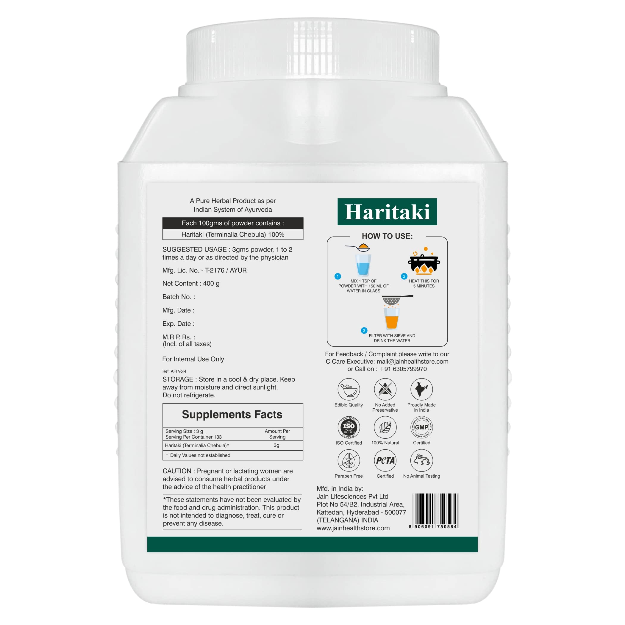 Jain Haritaki (Terminalia Chebula/Harade) Powder 400g