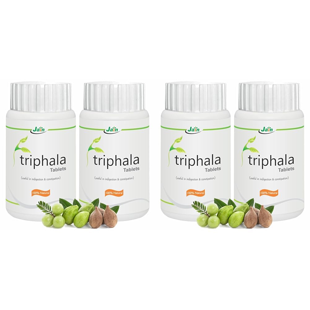 Jain Triphala Tablet 500 mg | Promotes Healthy Guts and Helps Fight Digestive Disorders| Constipation Relief |100% Natural | 100 Tablets (Pack of 4)