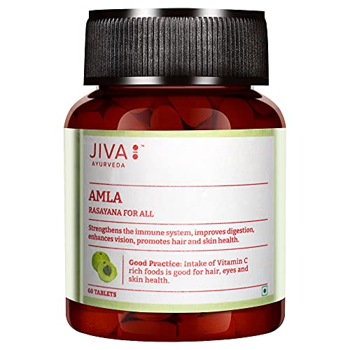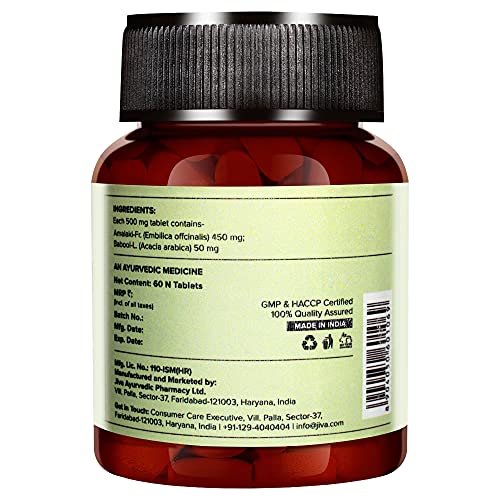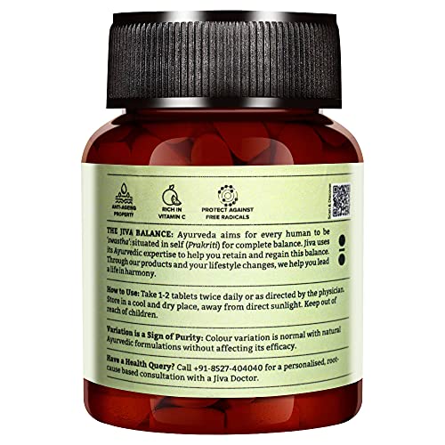 Jiva Amla Tablet has Indian gooseberry (Amla) as the main ingredient. Amla is the king of herbs because of the whole range of vital Ayurveda properties it contains. It balances tridoshas purifies the body systems and Refreshs weakened dhatus. Its Blod purifying and deigestive properties are unparalleled. If you feel general weakness or are prone to diseses taking this tablet will t your Immunety and energy levels. Amla is good in all diseses that is caused due to pitta aggravation as it is very effective in pacifying pitta dosha.