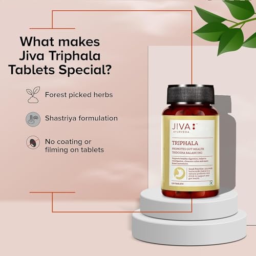 Ingredients: terminalia chebula emblica officinalis terminalia bellirica. Tablets to be consumed with water or as directed by physician. - jiva ayurveda.