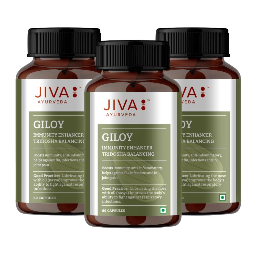 Jiva Giloy Capsule for Digestion | 100% Pure & Natural | Ageing and Immunity Boost | Herbal Supplements | Rich In Antioxidants 60 (Pack of 3)