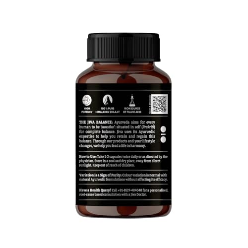 HomeHealth & PersonalDiet & NutritionHealth SupplementsJiva Pure Shilajit | Purifies Blood, Boosts Stamina And Rejuvenates Tissues | Pure Shilajit Sourced From Himalaya | Strengthens Reproductive System And Nervous System- 60 Capsules (Pack of 1)