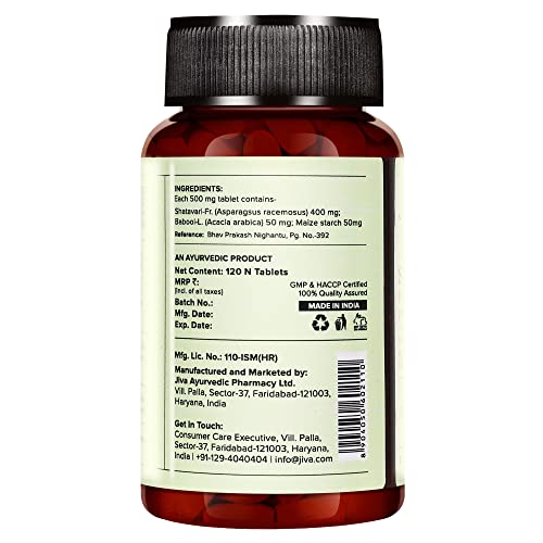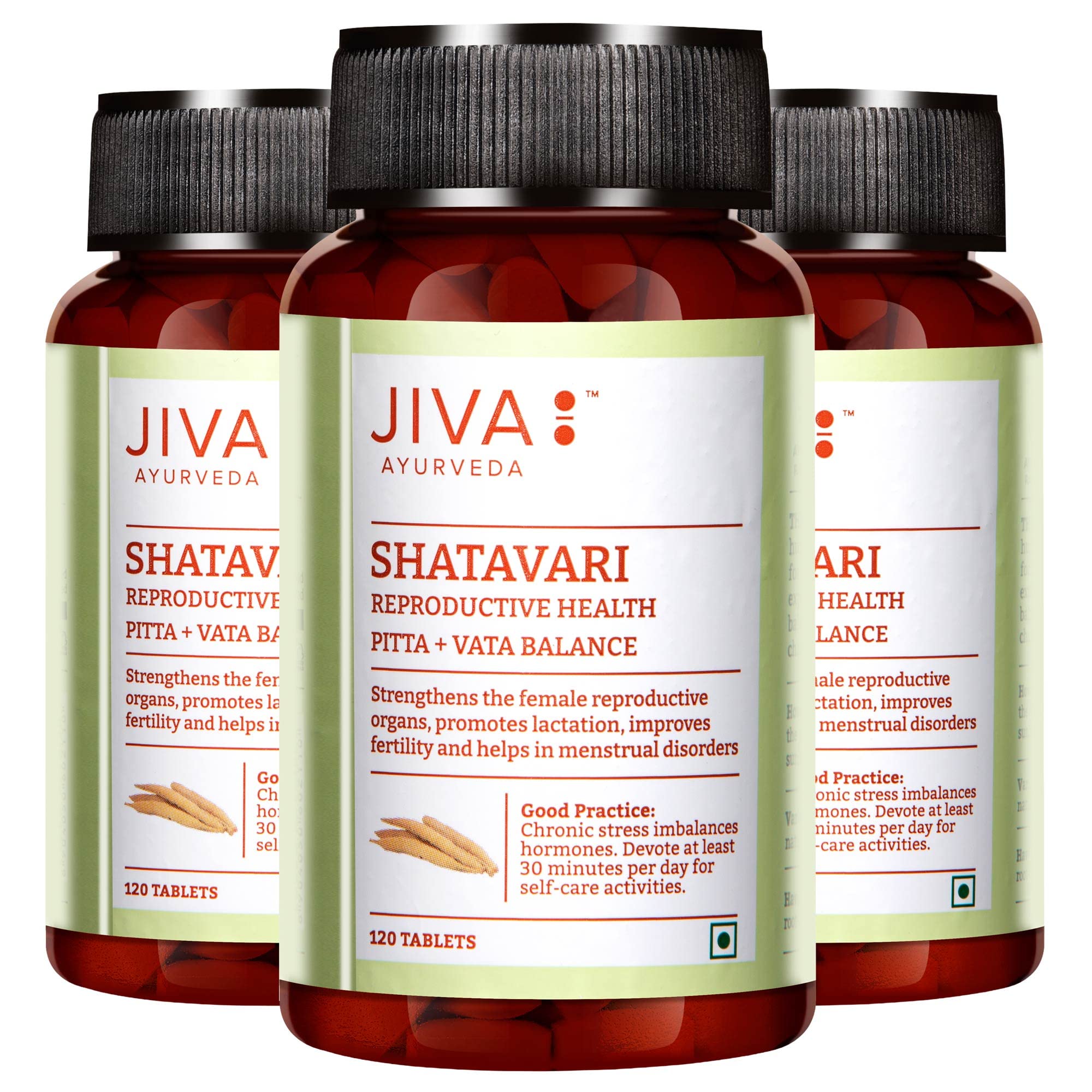 Jiva Shatavari Tablets 500mg 360 Tablet | 100% Pure & Natural | Manages Blood Pressure - 120 Tablet (Pack of 3)