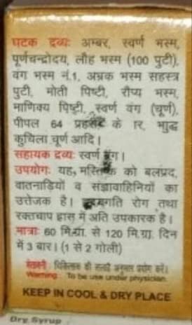 This is an unique Ayurvedic formulation for Cardiac & Brain diseases. Special Features : Strengthen the functionality of digestive system & respiratory system. Improves the functional capacity of heart blood vessels & Vas Deferences.