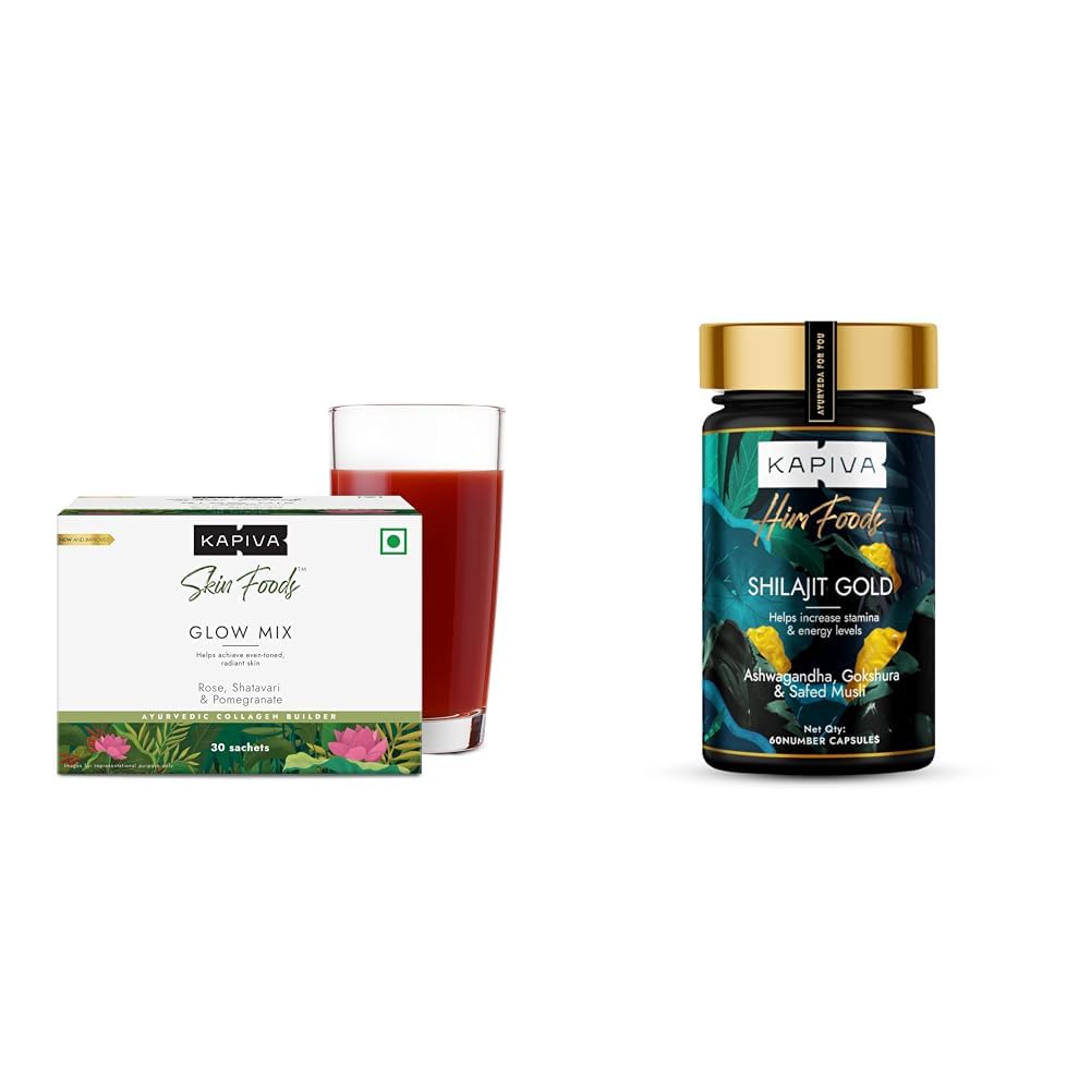 Kapiva Skin Foods Glow Mix | Ayurvedic Skin Supplement Collagen Powder | Skincare for Glowing & Healthy Skin (30 Sachets) & Kapiva Shilajit Gold 60 Capsules
